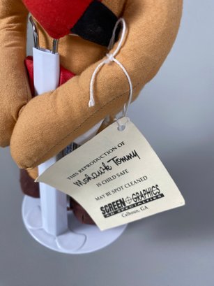 The doll is in good condition with its original tag and just needs some light dusting. It measures approximately 13" tall. The doll stand is included.