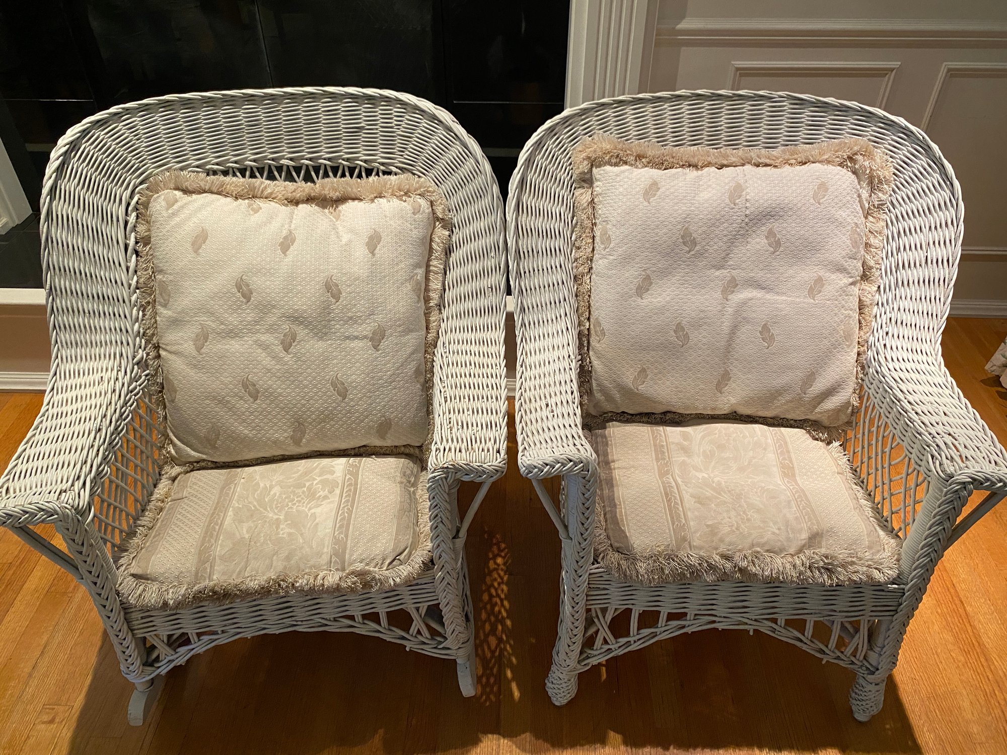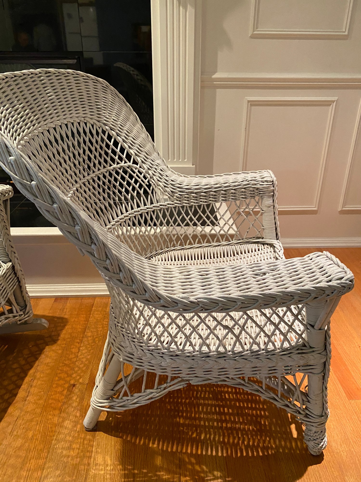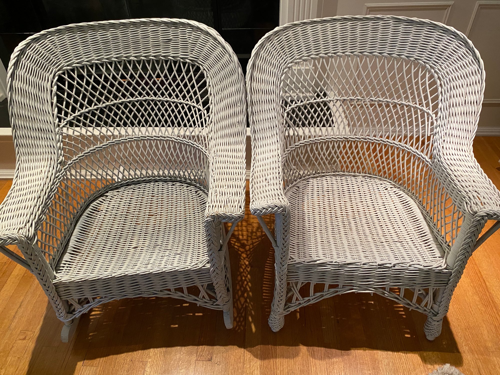 The chairs are in good, solid condition. The arm chair is 29-1/2" wide x 34-3/4" tall x 26-1/2" deep.