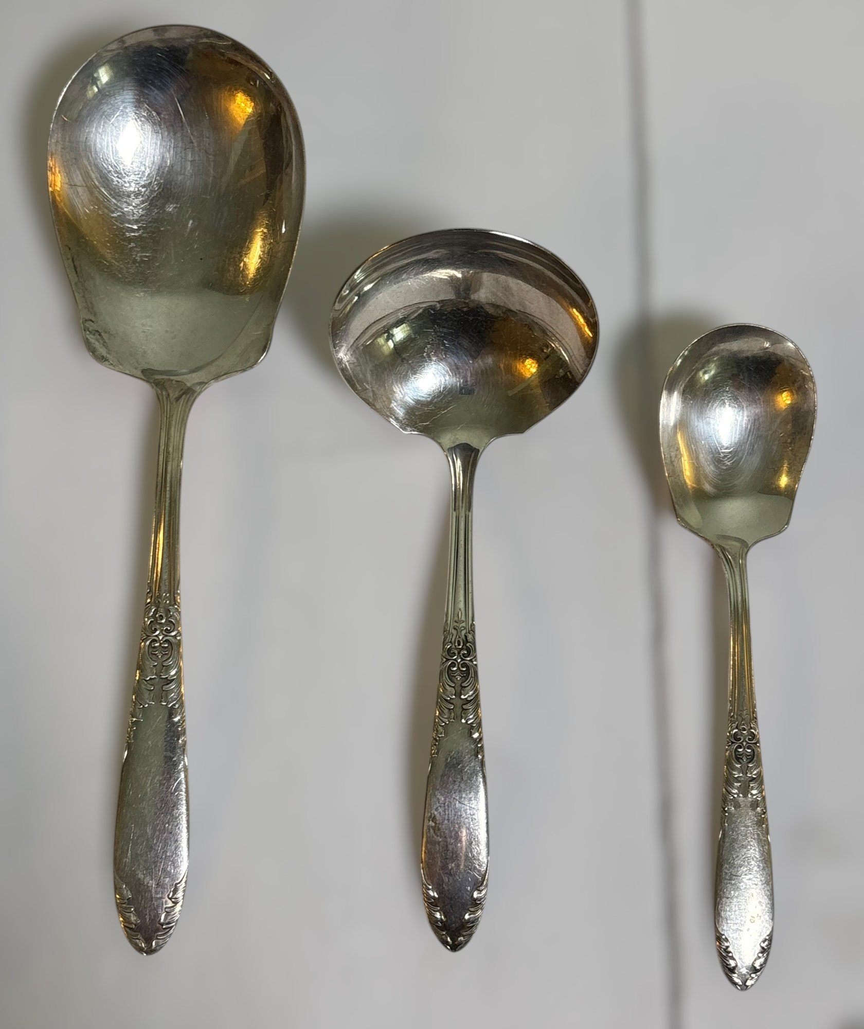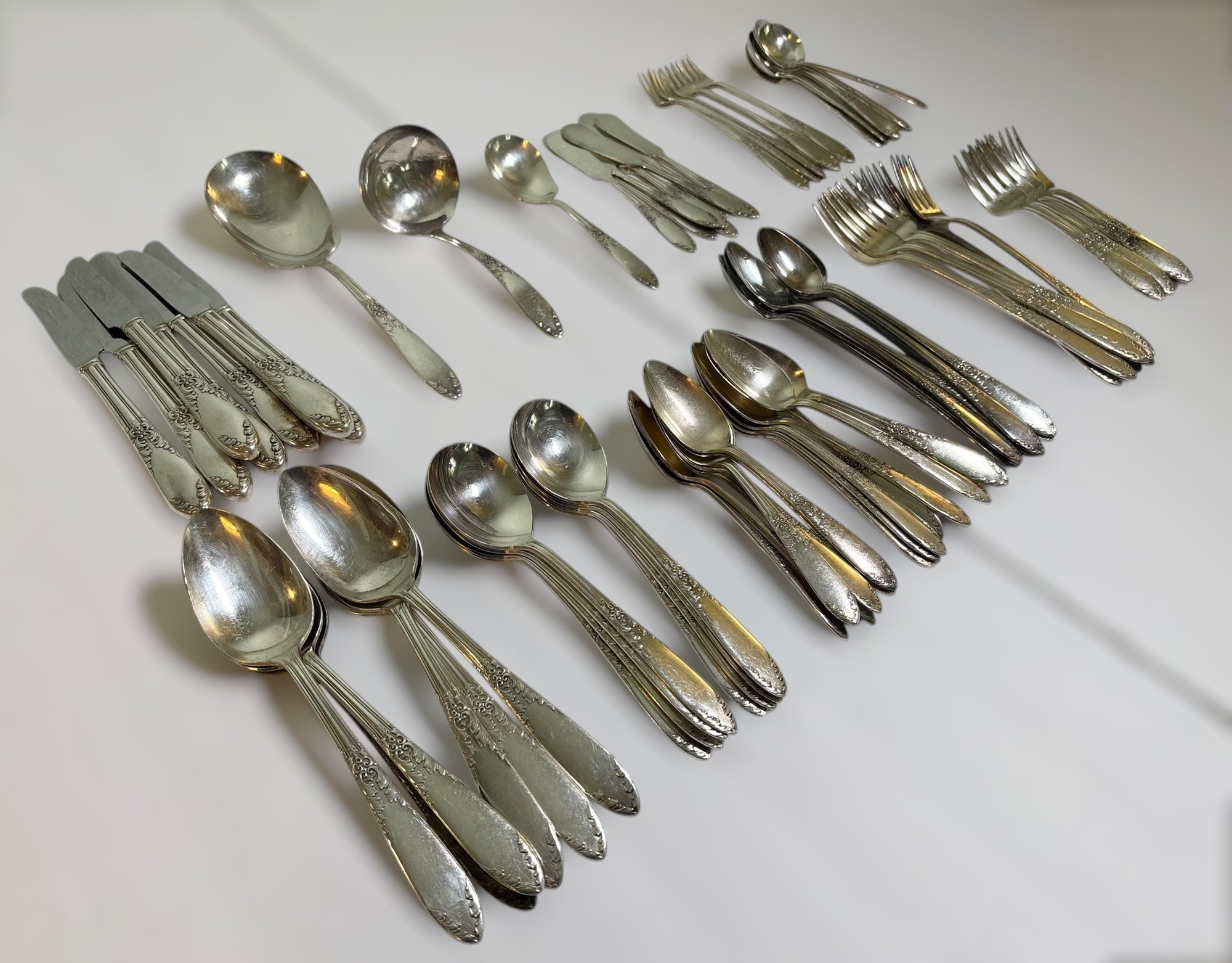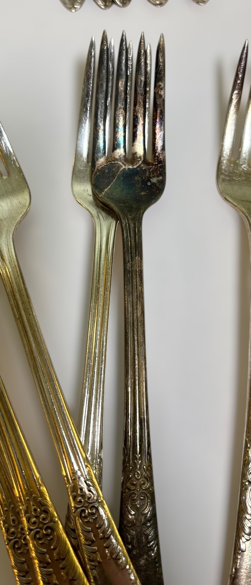 Flatware has various levels of tarnish and wear from use. Please see images for conditions.