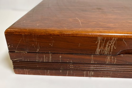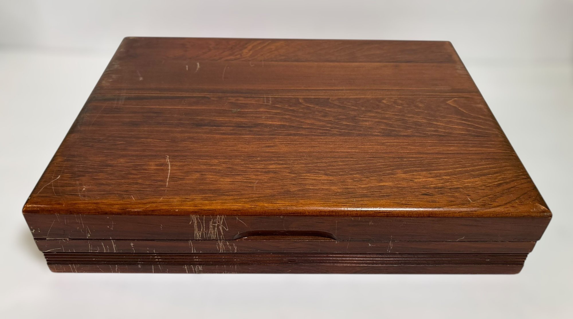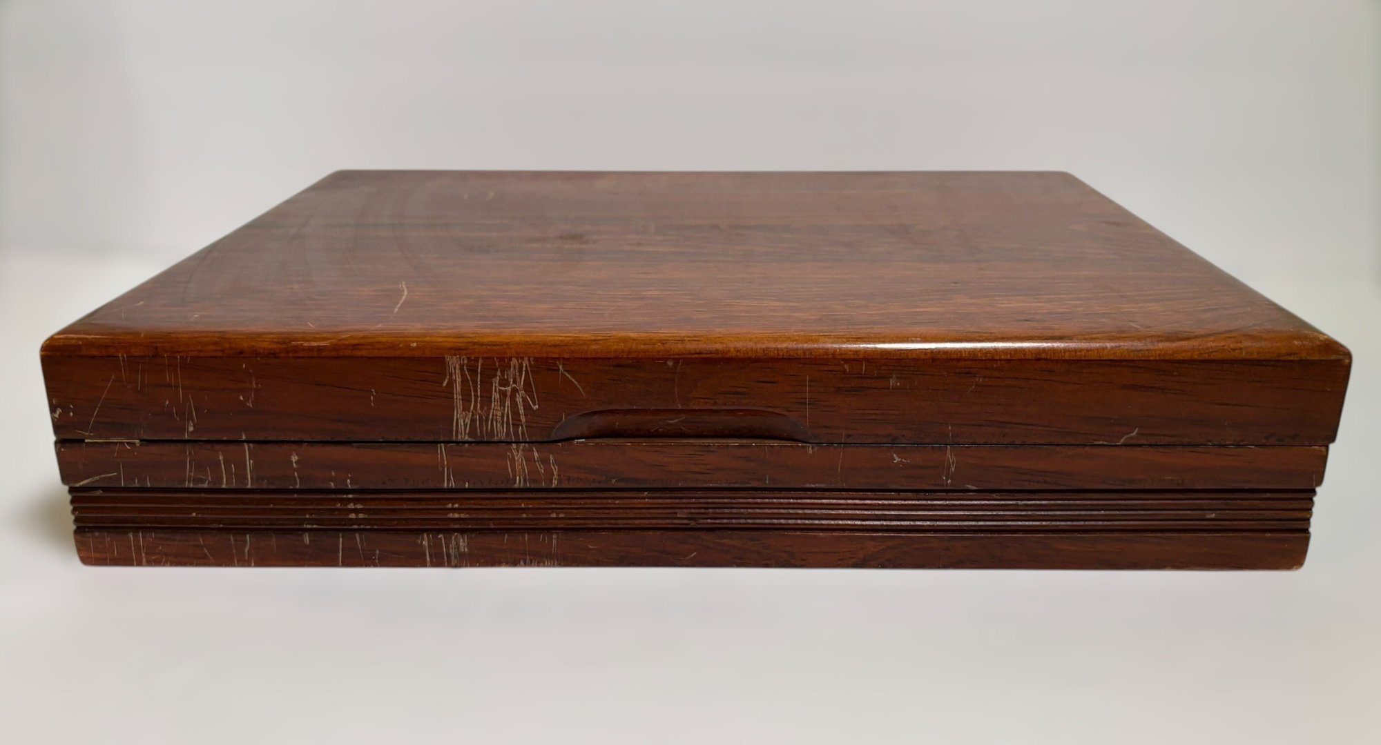 The wood is scratched on the case.