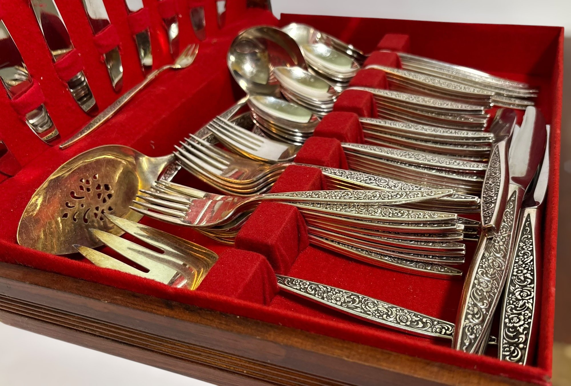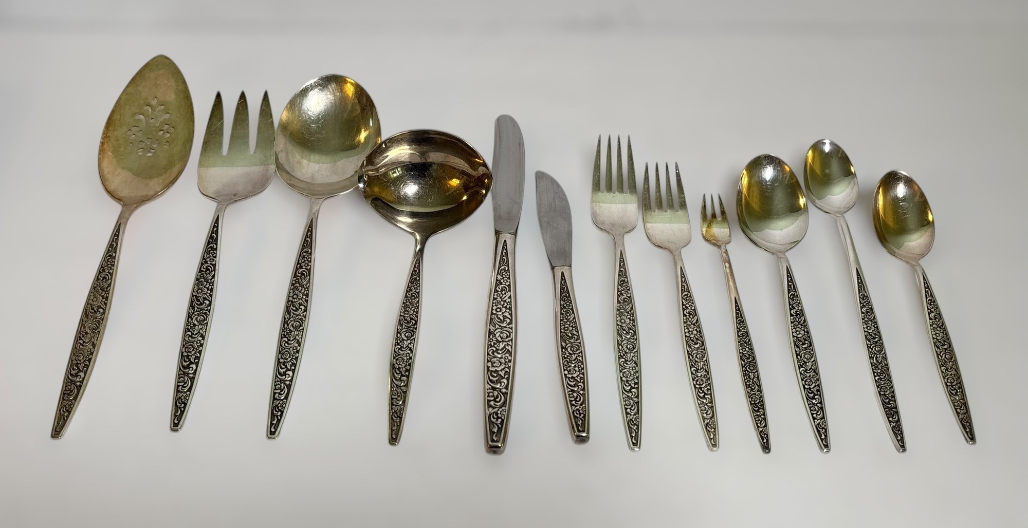 The silver-plate has various levels of tarnish. Please see images for conditions.