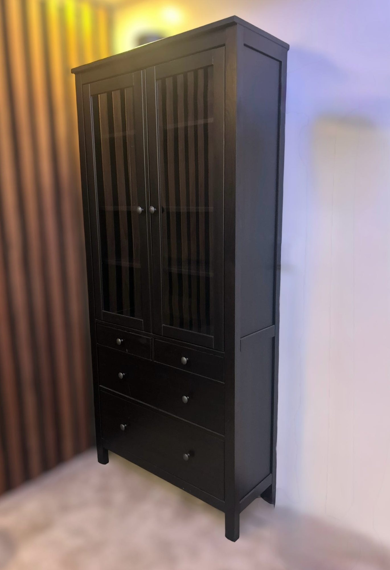 Piece has adjustable feet for stability on uneven floors. With the glass-door cabinet you can show off as well as protect your glassware or your favorite collection.