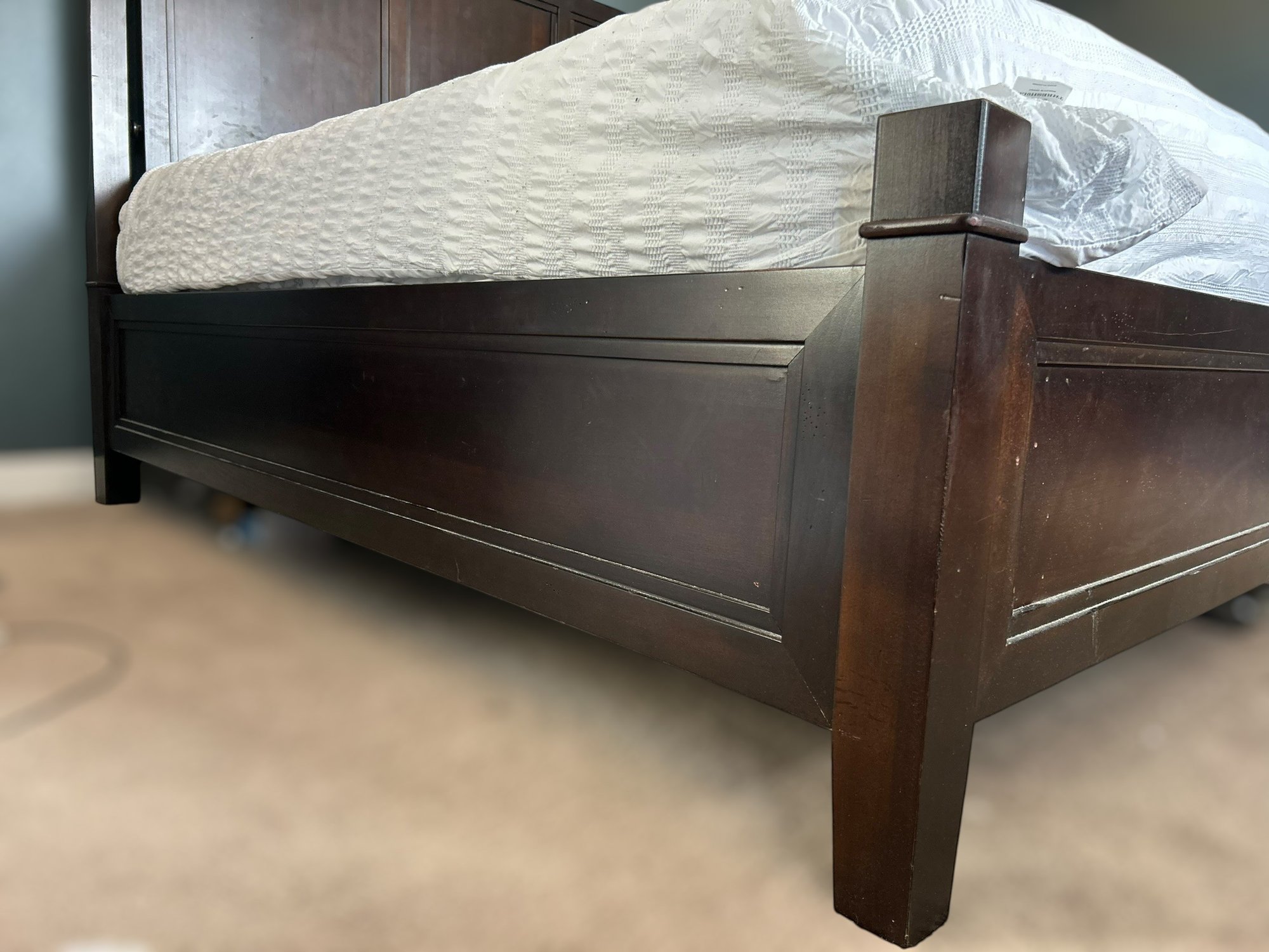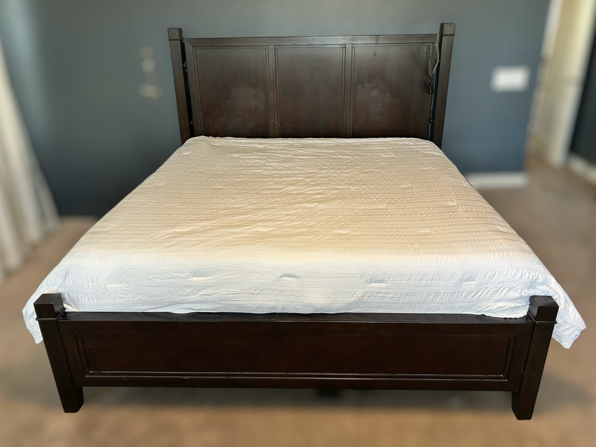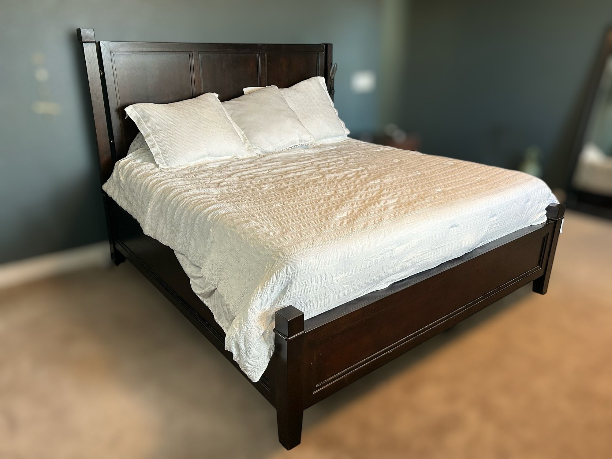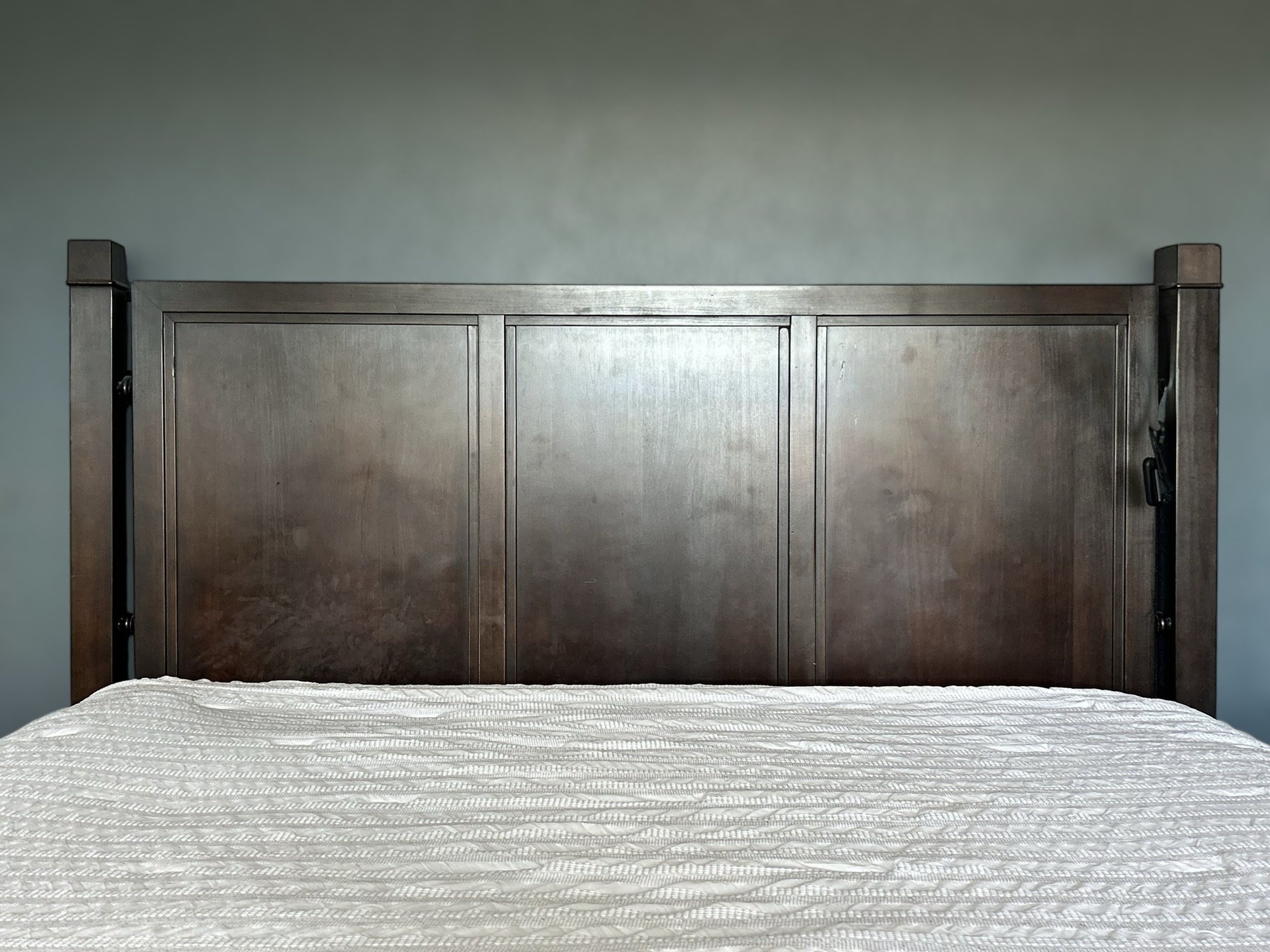 Measures 87”l x 83”w, Headboard is 61”h, Footboard is 23”h