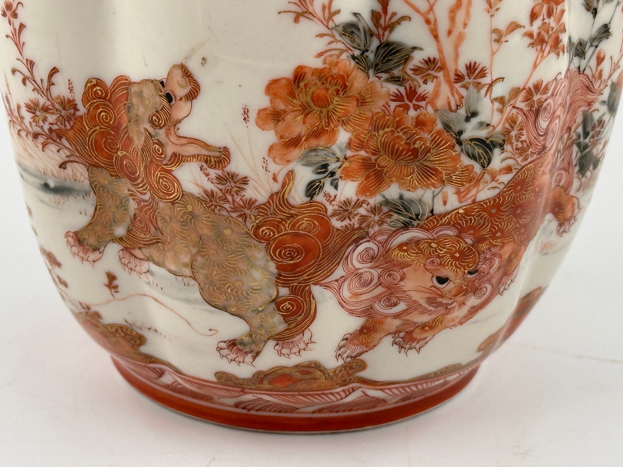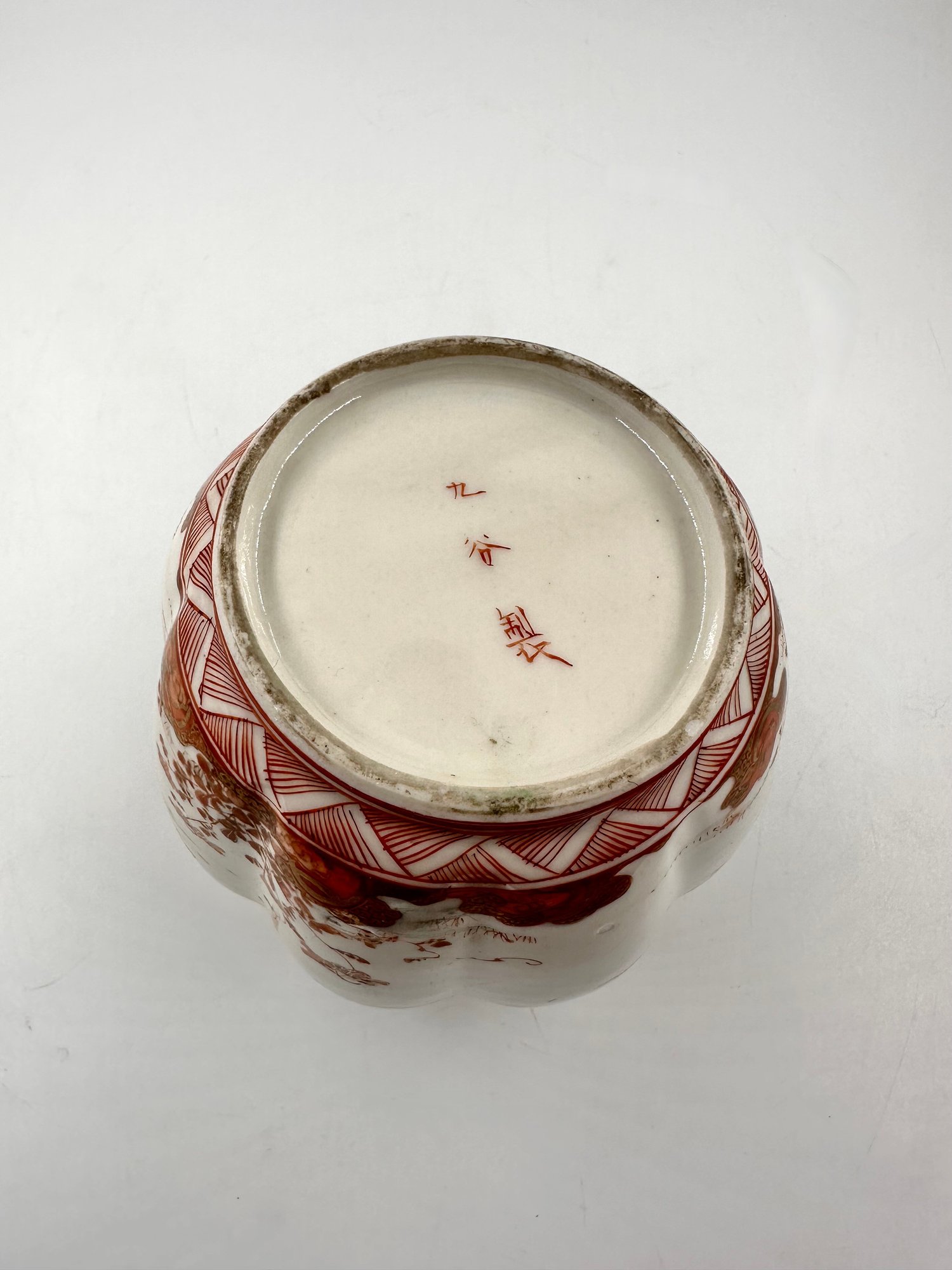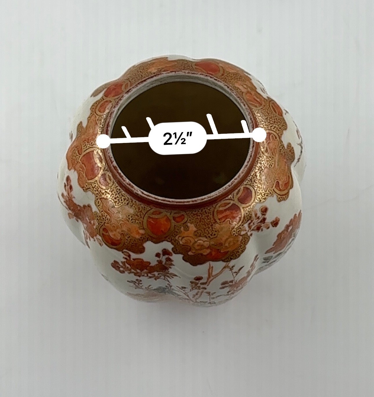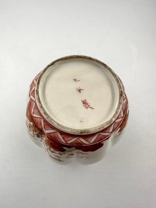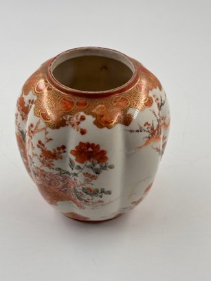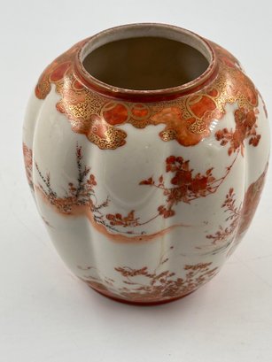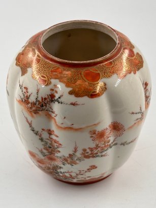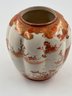 In the traditional Japanese, "Gold Imari"-style decoration with a hand-painted, rich red and orange floral motif, this open jar would certainly add to your home decor furnishings!