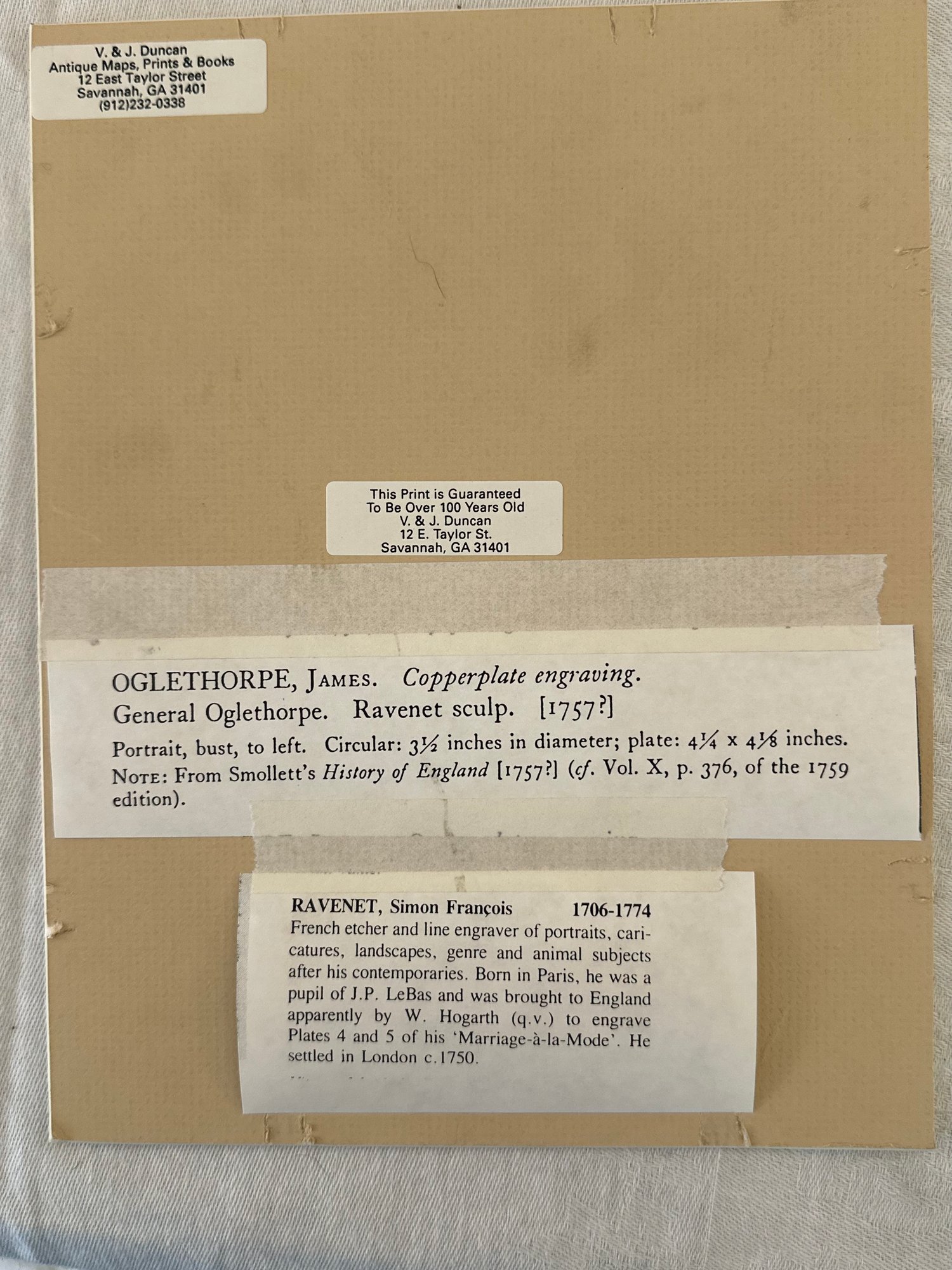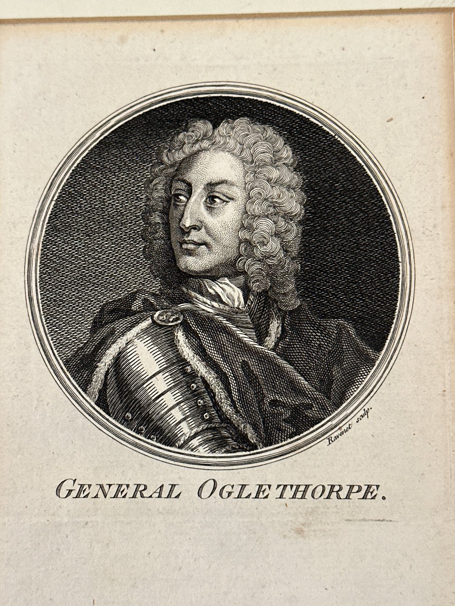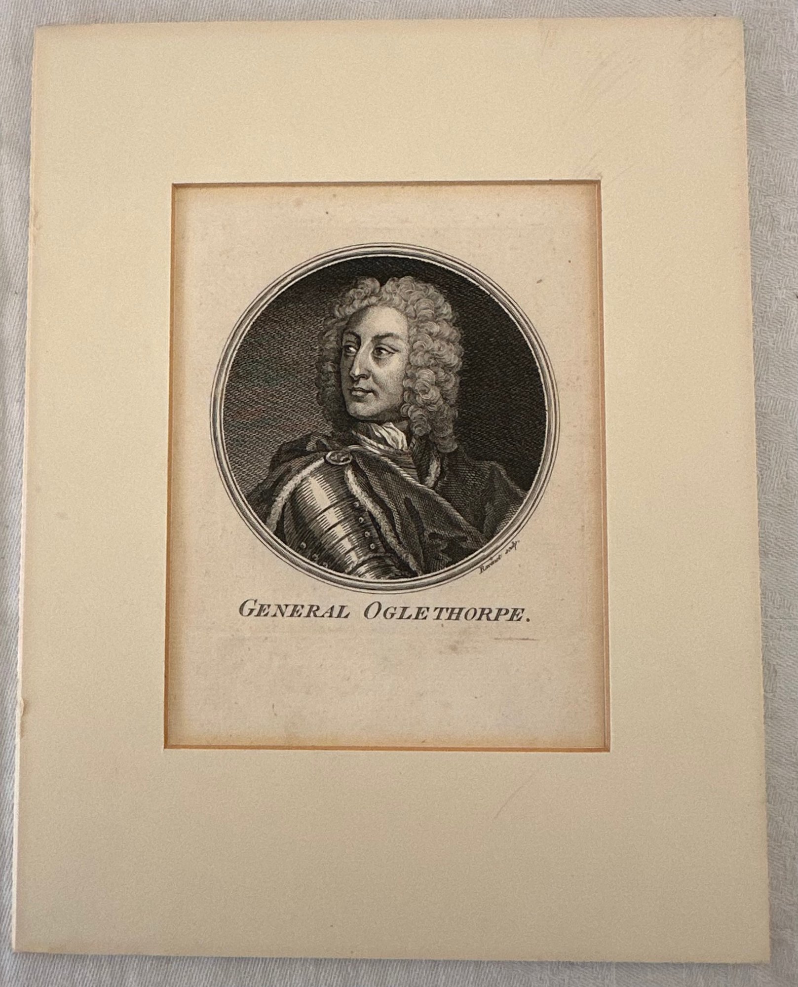 Matted print of engraving of General Oglethorpe's portrait by Ravenet;