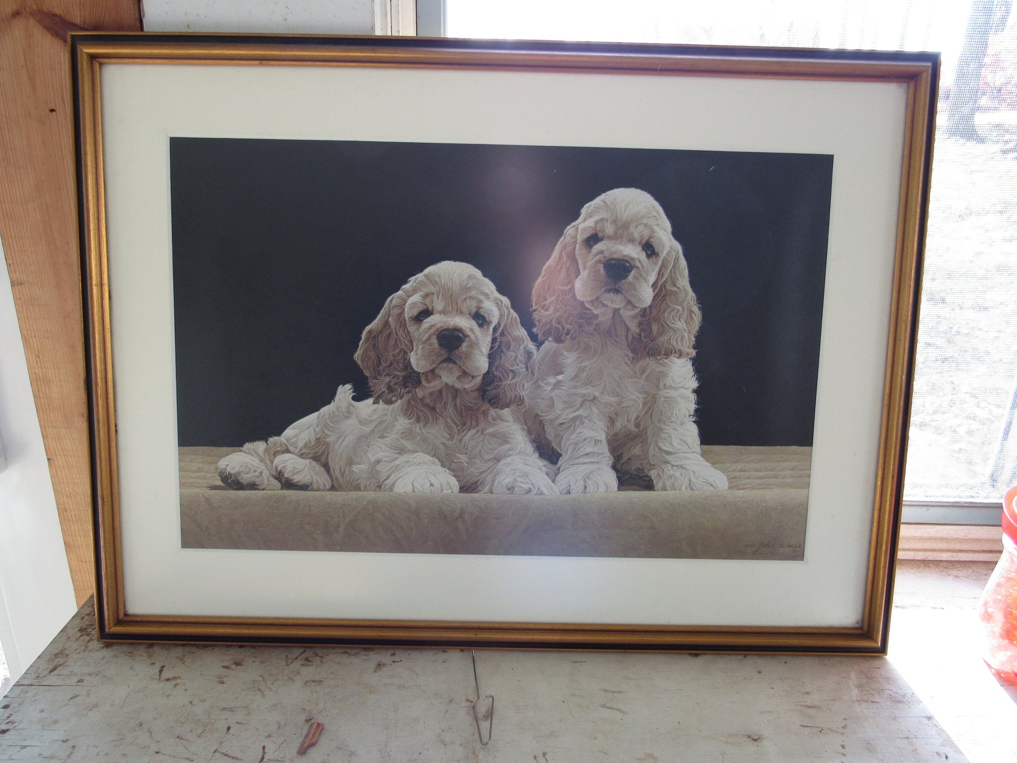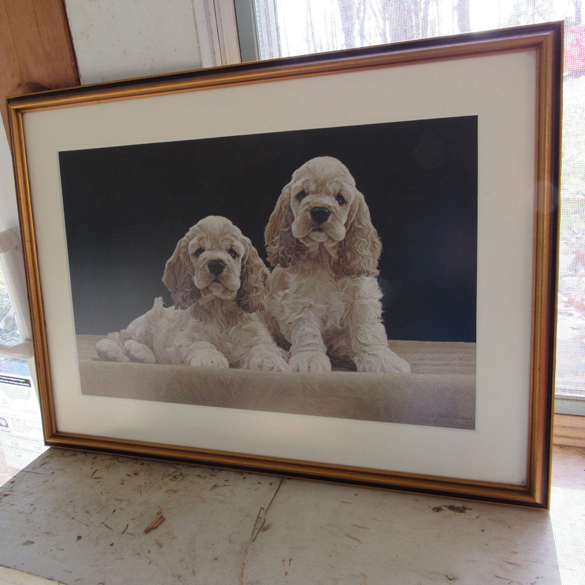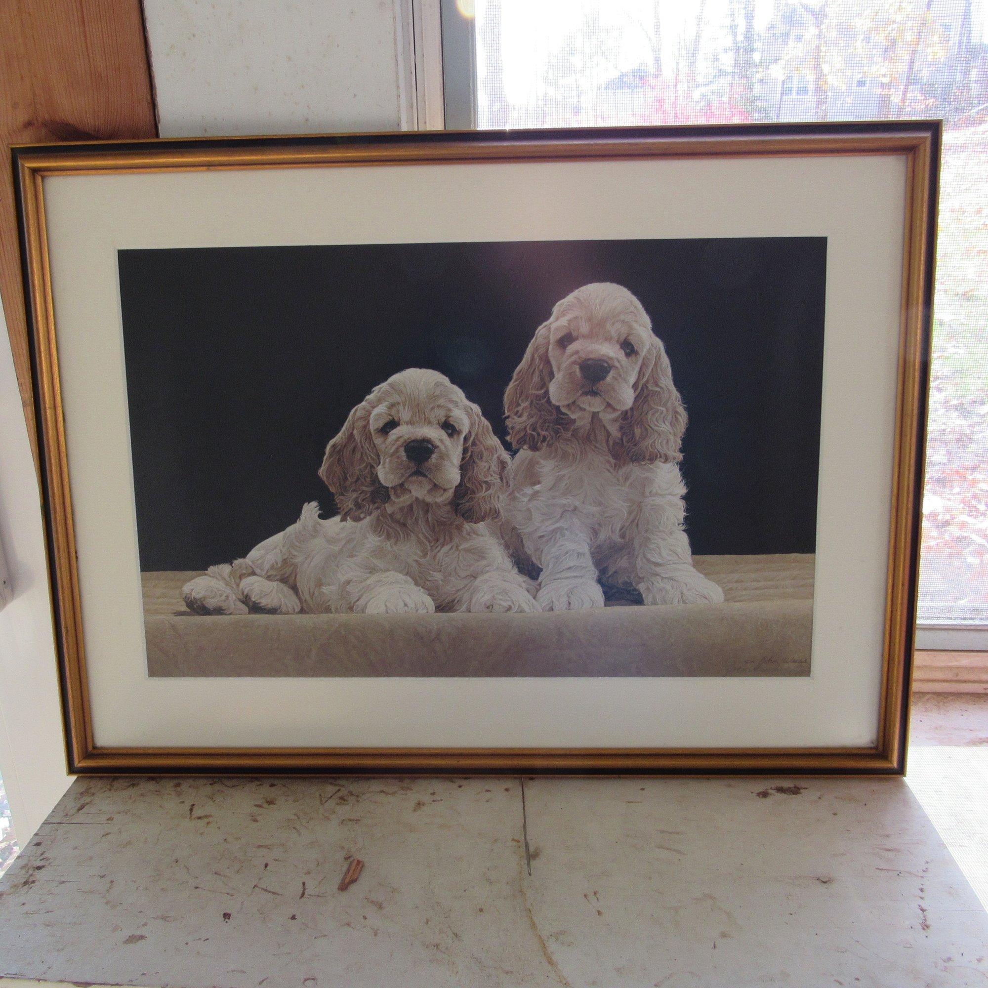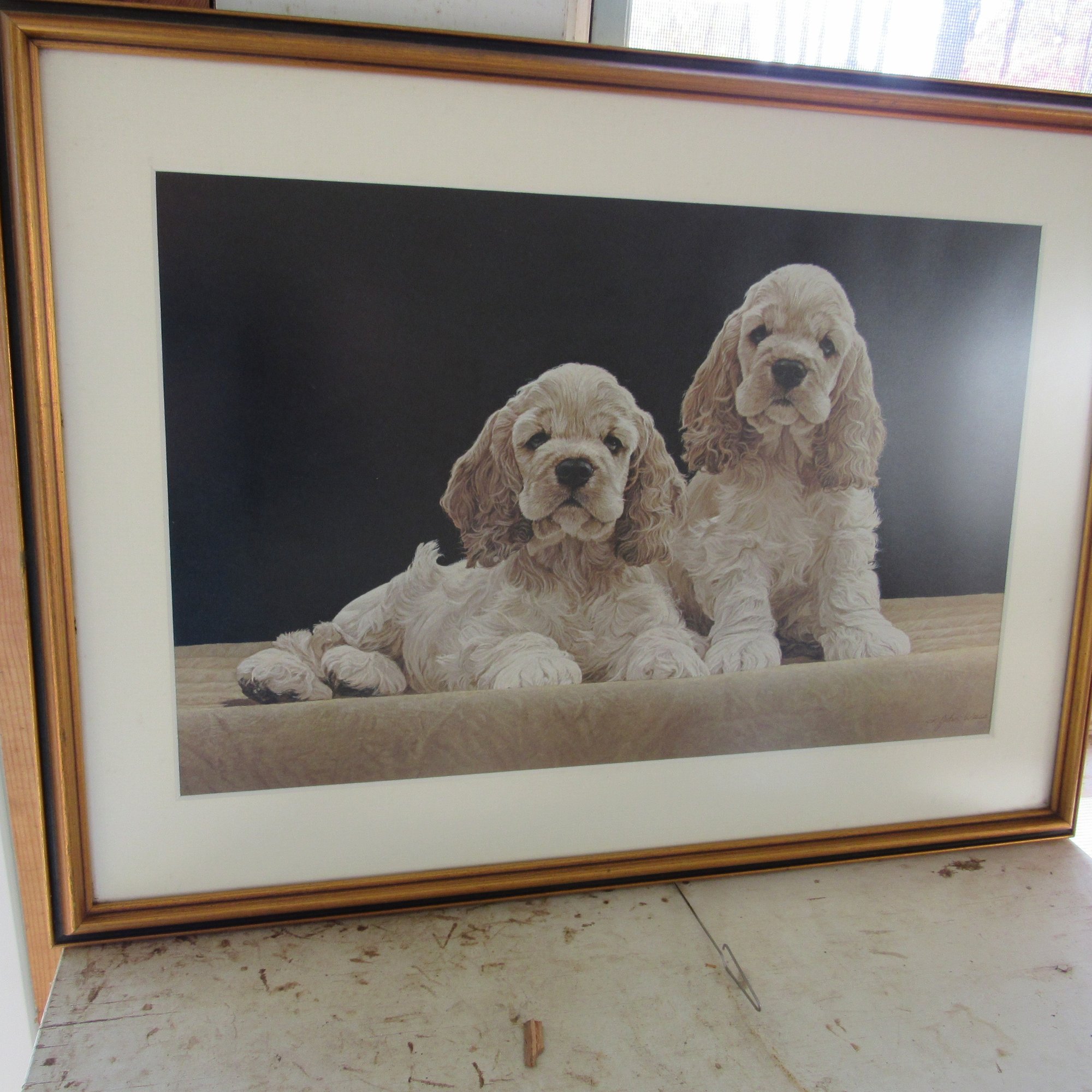 cocker spaniel pups by American artist john Weiss 20 1/2" x 16 1/2
