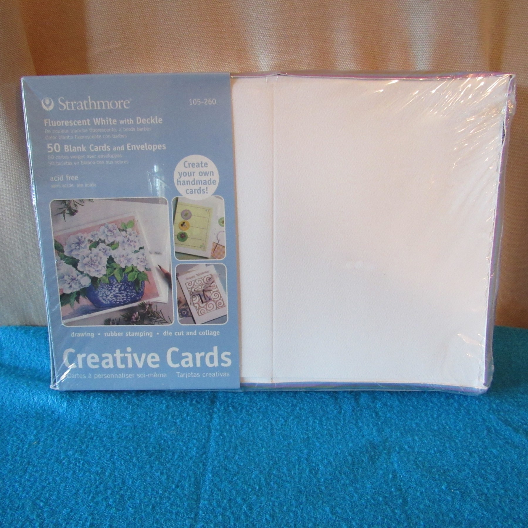 New Strathmore Creatine 50 Blank Cards & Envelopes florescent white with deckle