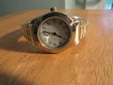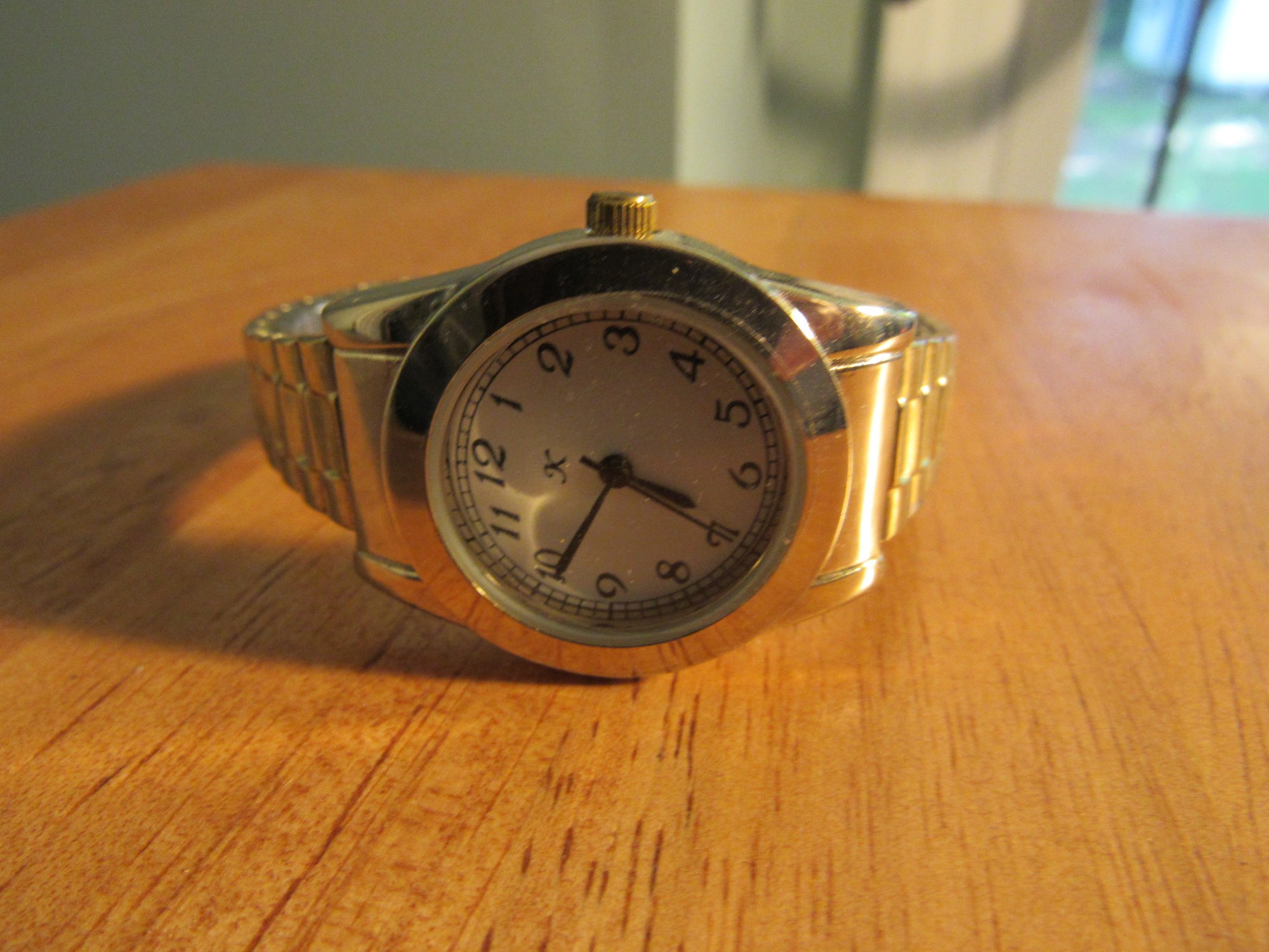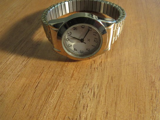 K Watch Gold Tone White Dial Stretch Band Women's