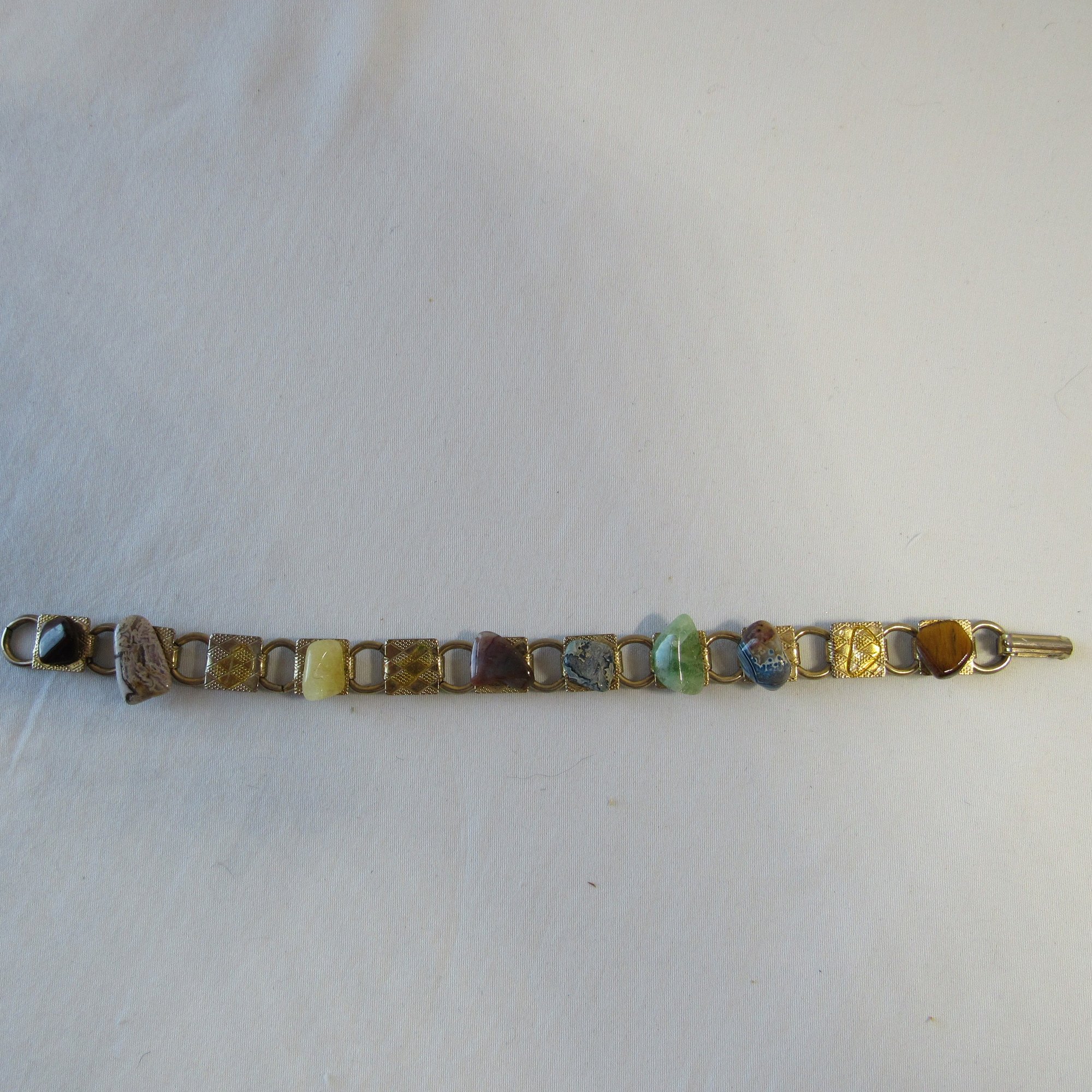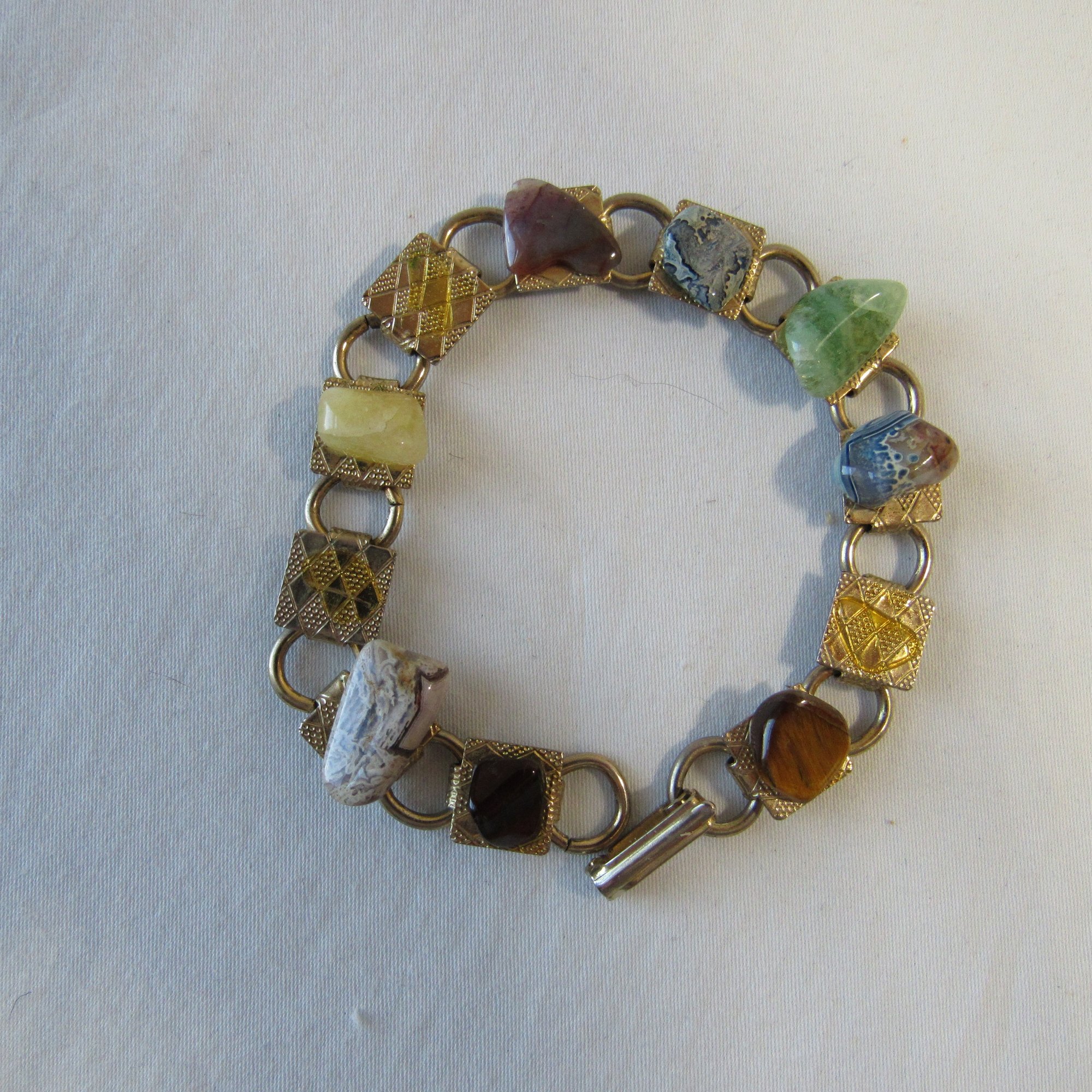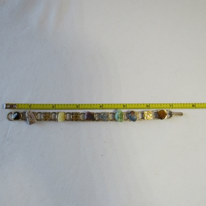 Vintage Silver Beautiful Stone Link Bracelet 7"