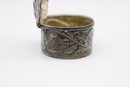 This enchanting small sterling silver pill box, adorned with a cherub motif, carries the whimsy and romance of the Victorian era in its design. The cherub, a symbol of innocence and love, is meticulously embossed, creating a tactile and visual delight. A timeless artifact, it whispers tales of bygone days and secret keepsakes.