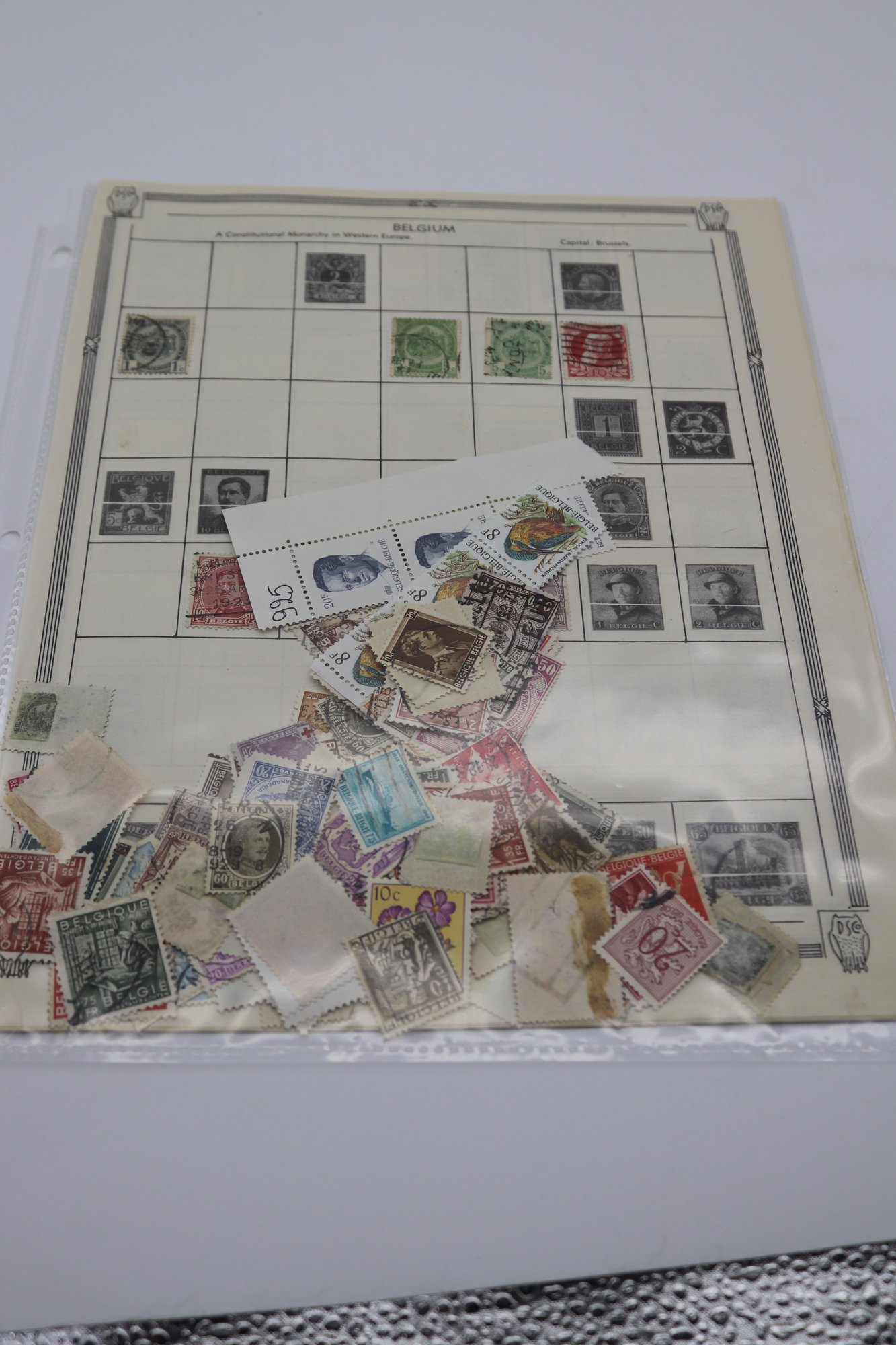 This lot offers a splendid selection of vintage Belgian postage stamps, each piece a snippet of the rich Belgian narrative. This collection includes a variety of stamps that display the evolution of Belgium's postal aesthetics, from the early intricate engravings to modern graphic designs. The stamps are mounted on a collector's display page, with several loose pieces adding to the variety and volume of this lot.