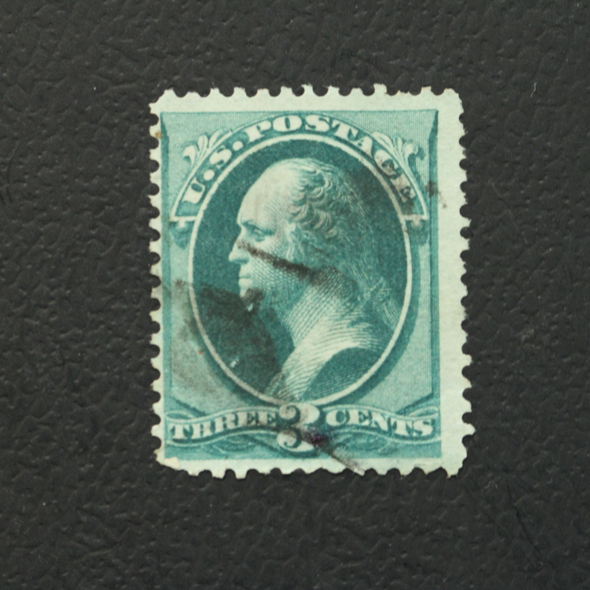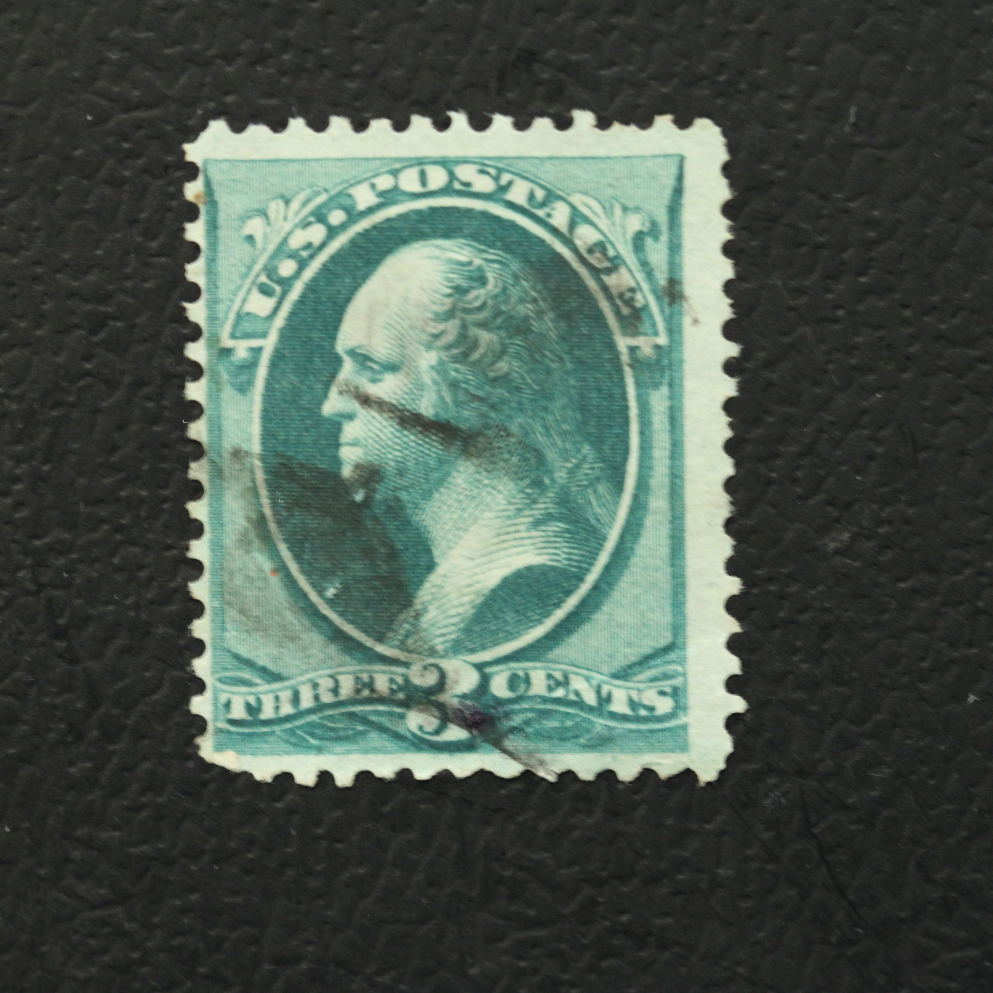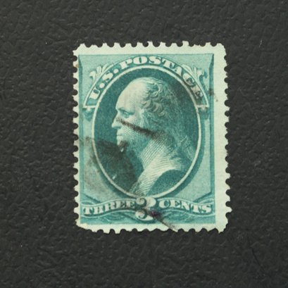 This is a vintage U.S. 3-Cent George Washington postage stamp featuring an elegant portrait of the first president in rich green ink. The stamp retains crisp details and perforations, making it a standout collectible for philatelists. It also shows authentic cancellation marks, adding to its historical charm and authenticity. This piece offers a tangible connection to America’s postal history and legacy.