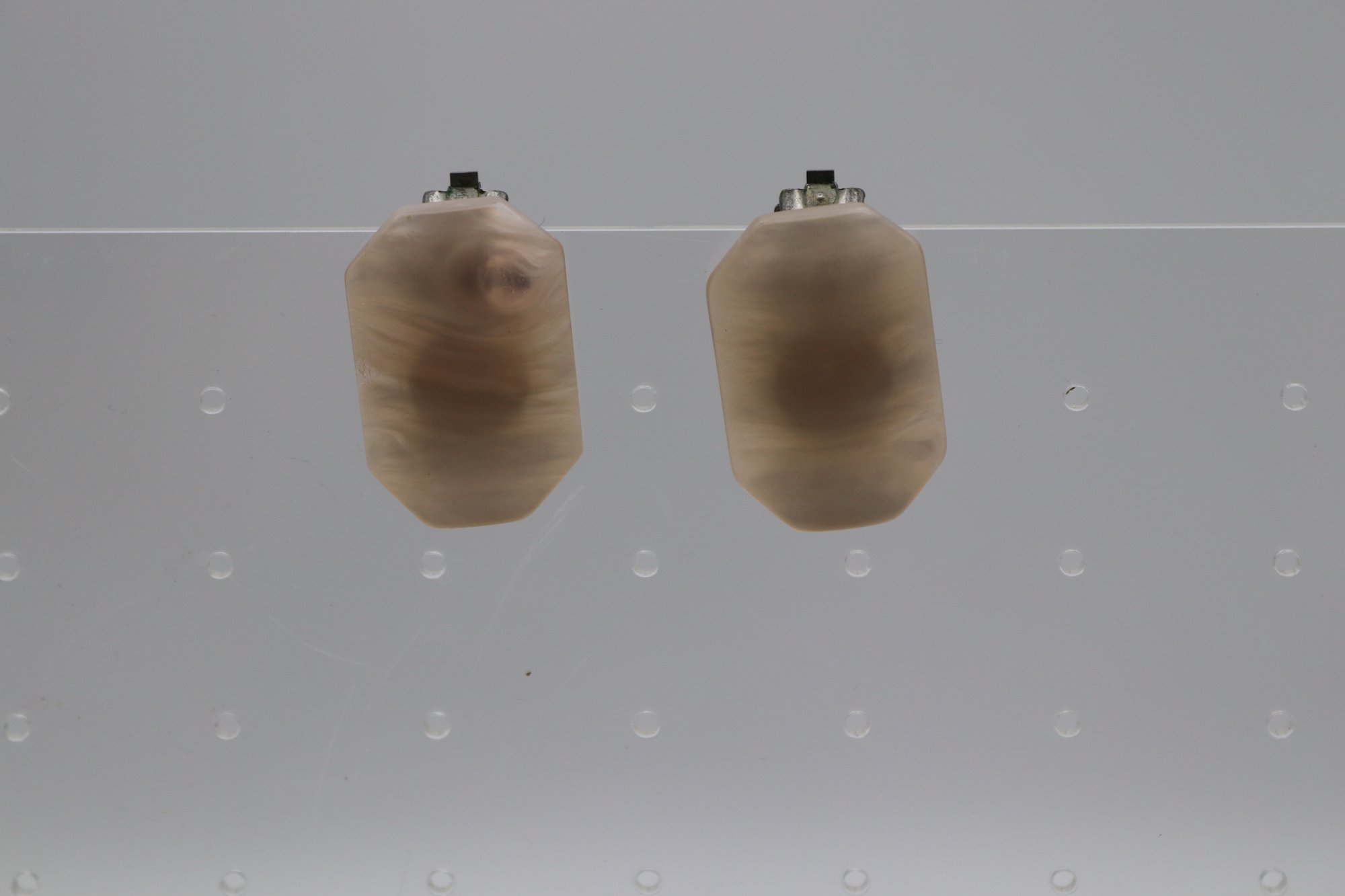 Behold the subtle charm of these vintage Art Deco-style earrings, featuring a unique translucent material adorned with an organic swirl pattern. The alluring, warm hues and distinctive design make these earrings a testament to the Art Deco movement's love for bold shapes and the beauty of form. These clip-on earrings marry the artistry of the past with the ease of modern wear, making them as comfortable as they are striking.