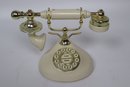 Step back in time with this exquisite Columbia Tel-Com rotary dial telephone. Designed to replicate the classic phones of the early 20th century, this piece combines the charm of yesteryear with modern functionality. The phone features a nostalgic ivory and gold color scheme, complete with a traditional rotary dial and a stately handset cradle. Perfect for enthusiasts of vintage electronics or as a distinctive home decor item.