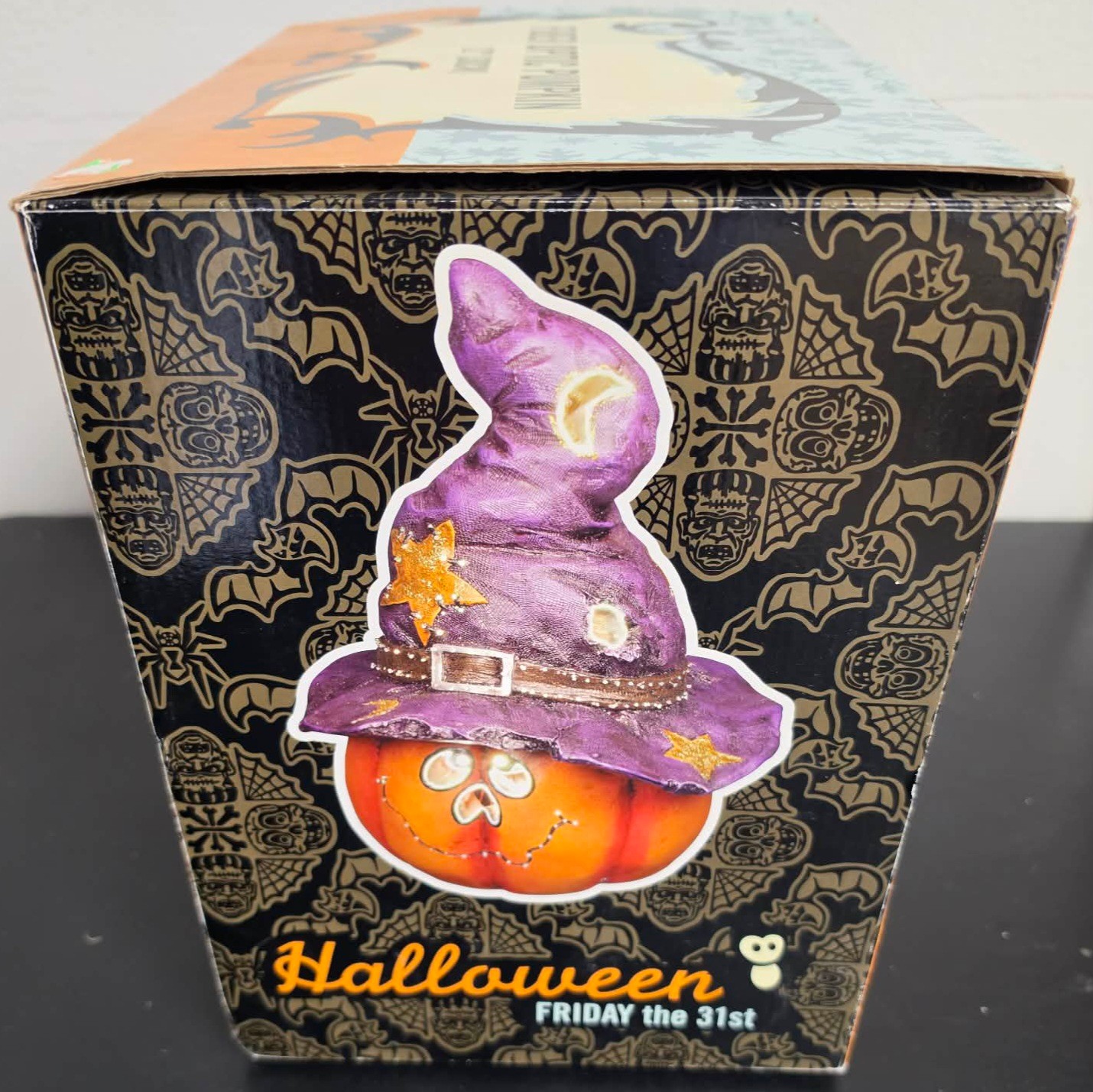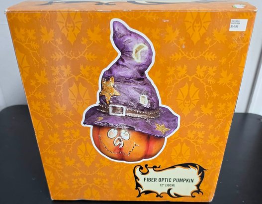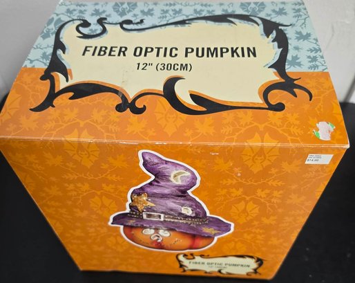 12-inch fiber optic pumpkin decoration featuring a wizard hat. Tested & Works.