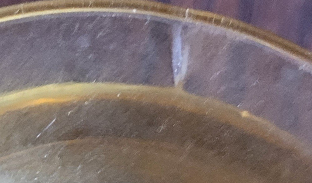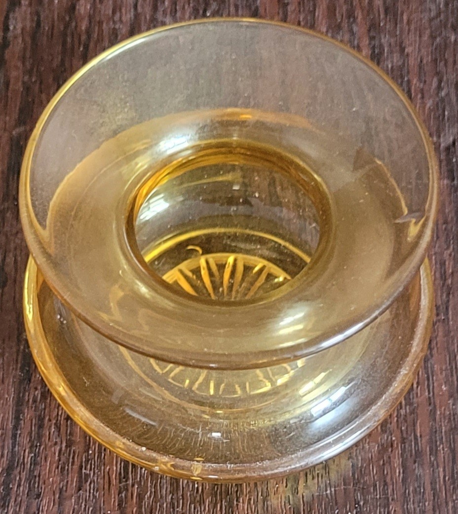 This measures 3" in diameter by 1.625" tall. This is a beautiful piece of glass considering the year. It does have a few flaws in the glass. See pictures for details.