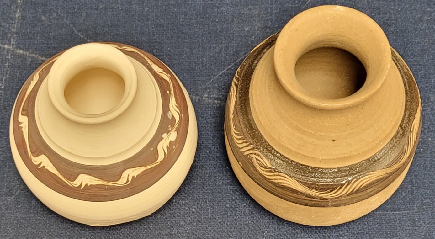One of them is cracked at the bottom. This one measures 3.75" tall and the other one measures 3" tall. See pictures for details.