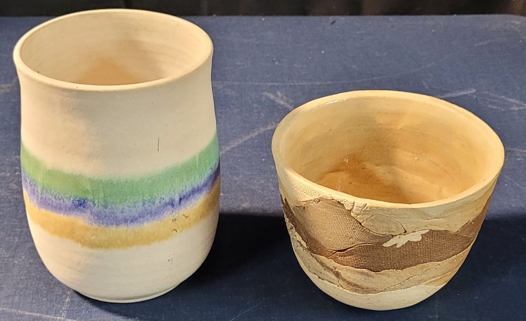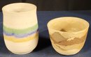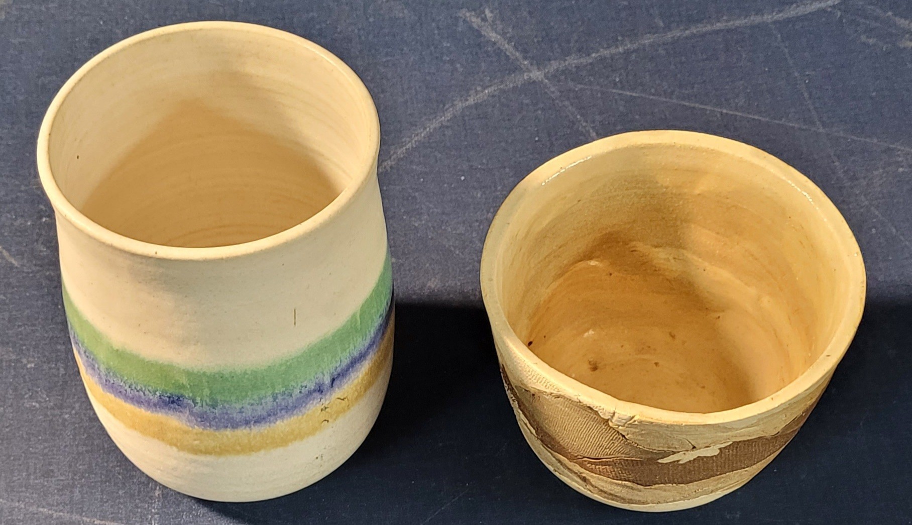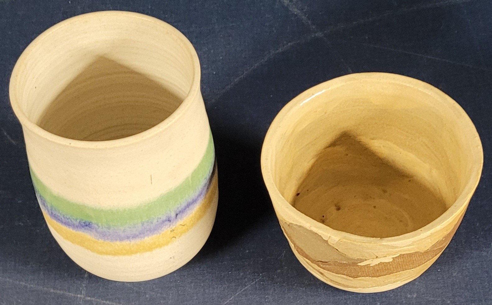 One of these measures 4.125" tall by 5.75" in diameter and the other one measures 6.125" tall by 4.5" in diameter. I didn't see any cracks or chips. See pictures for details.