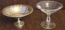 The silver plated one measures 3.25" tall by 6.5" in diameter and the glass one measures 4.5" tall by 5.25" in diameter. See pictures for details.