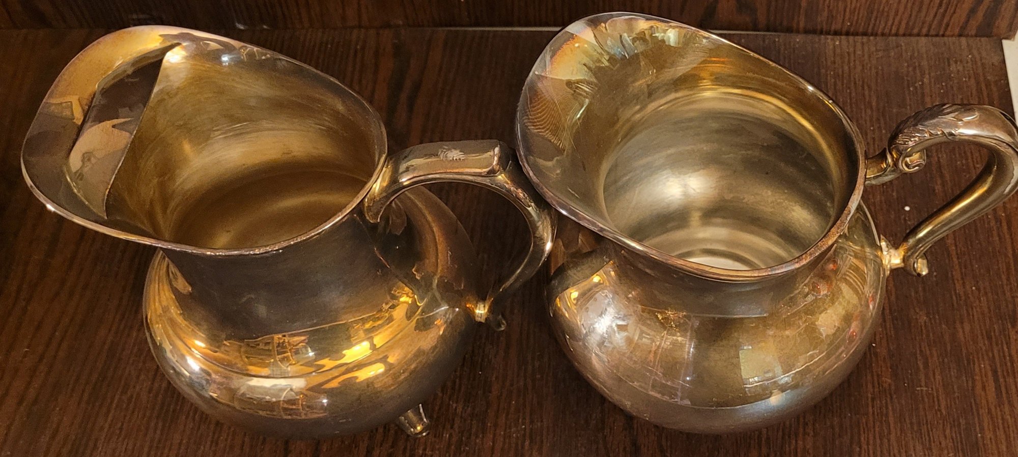 One is Reed & Barton and the other one is Croydon. They measure 8" tall and 8.25" tall. Both are in really good condition. See pictures for details.