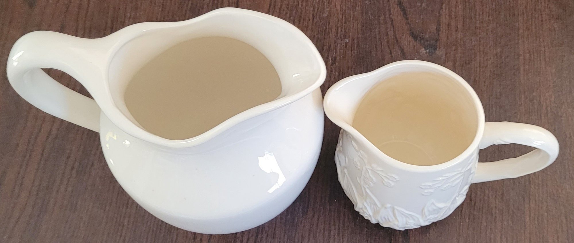 The bigger one measures 8.75" tall and the other one measures 6" tall. See pictures for details.