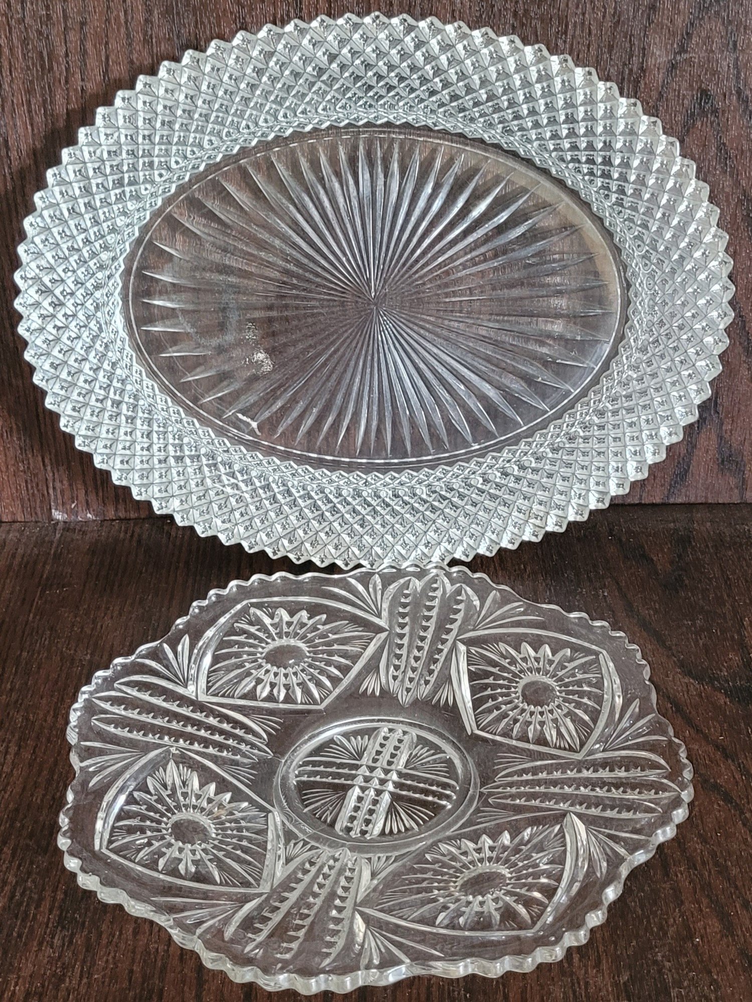 One measures 12.25" long by 9.25" wide and the other one measures 9" in diameter. See pictures for details.