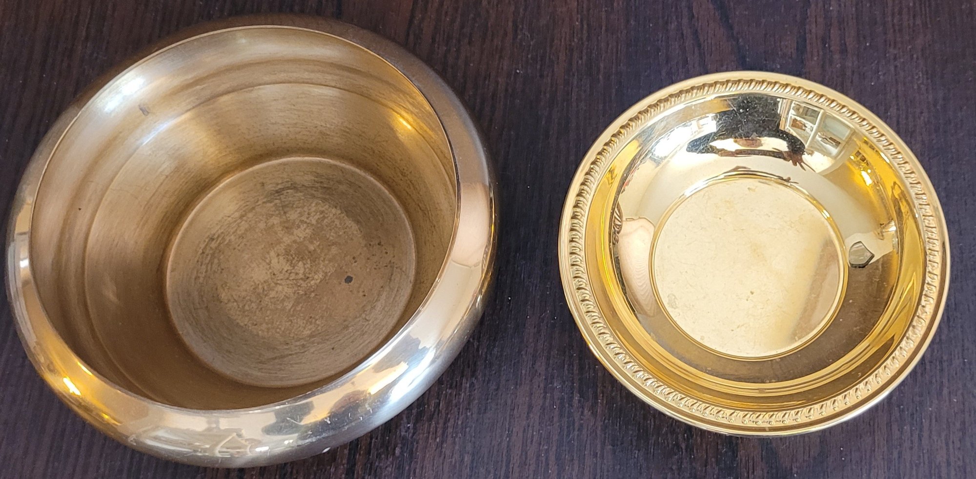 The bigger one measures 7" in diameter by 2.5" tall and the other one measures 5.5" in diameter by 2" tall. See pictures for details.