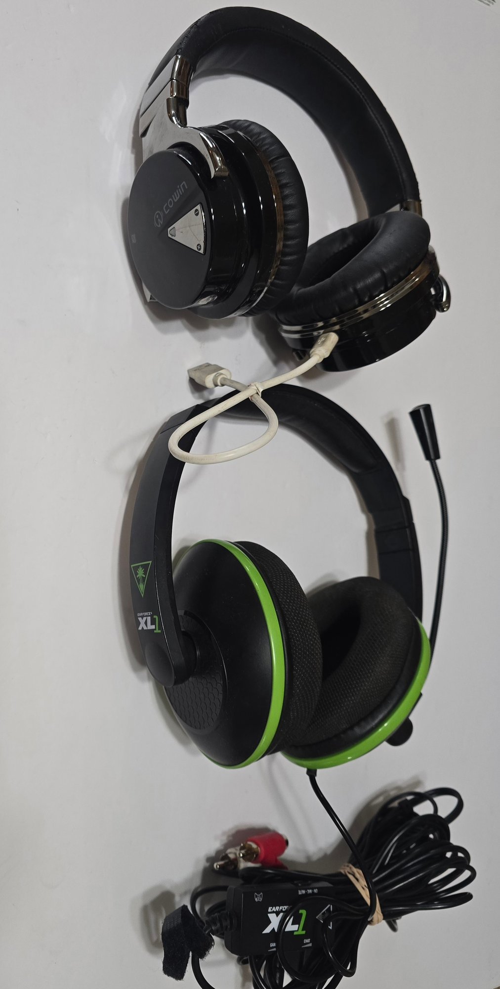 Cowin E7 Active Noise Cancelling Bluetooth Headphones and what appears to be a Turtle Beach Ear Force XL1 gaming headset for the Xbox 360. Both pair are untested.