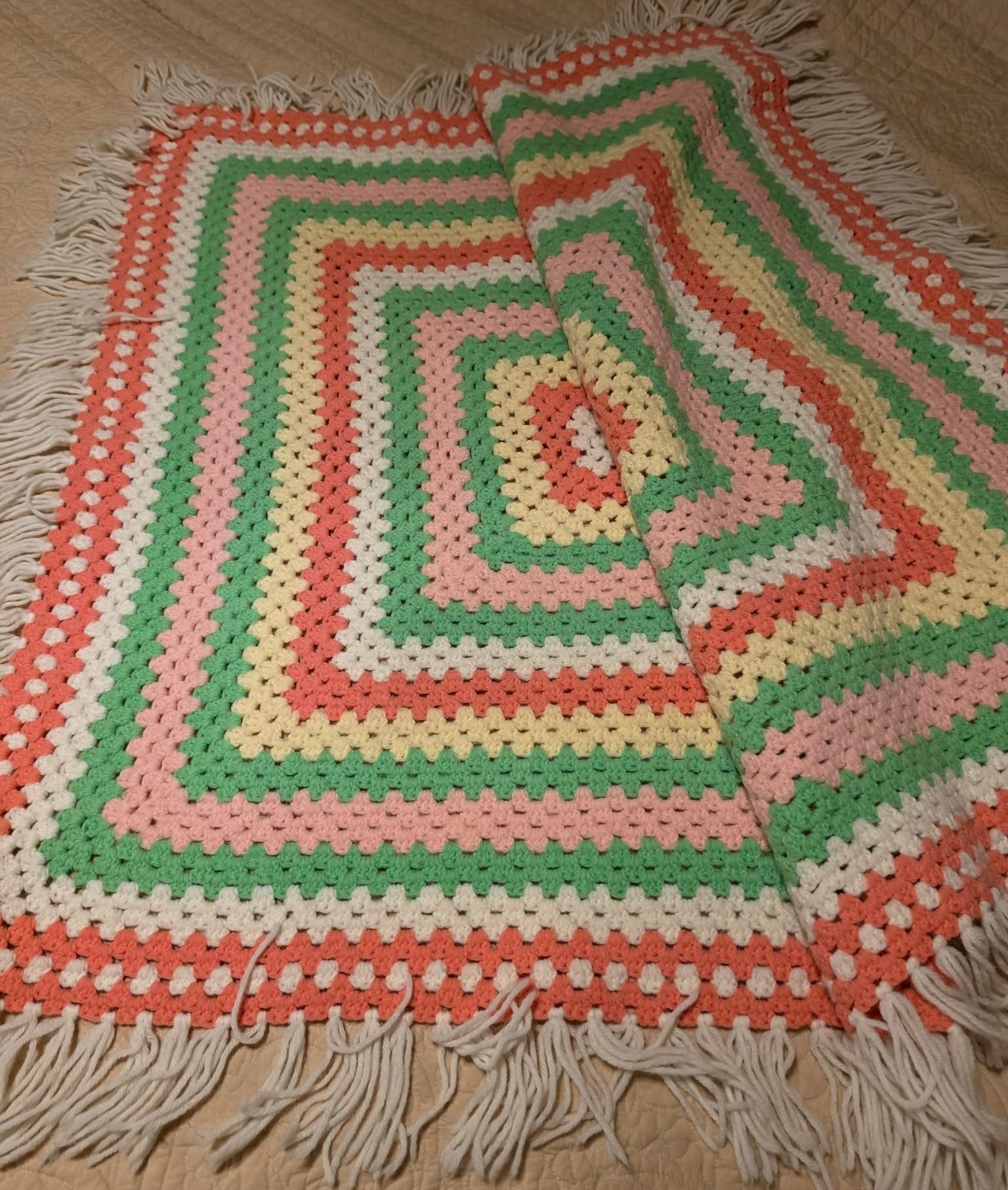 Measures 42 x 52 not including fringe and 36 x 50 not included the fringe.