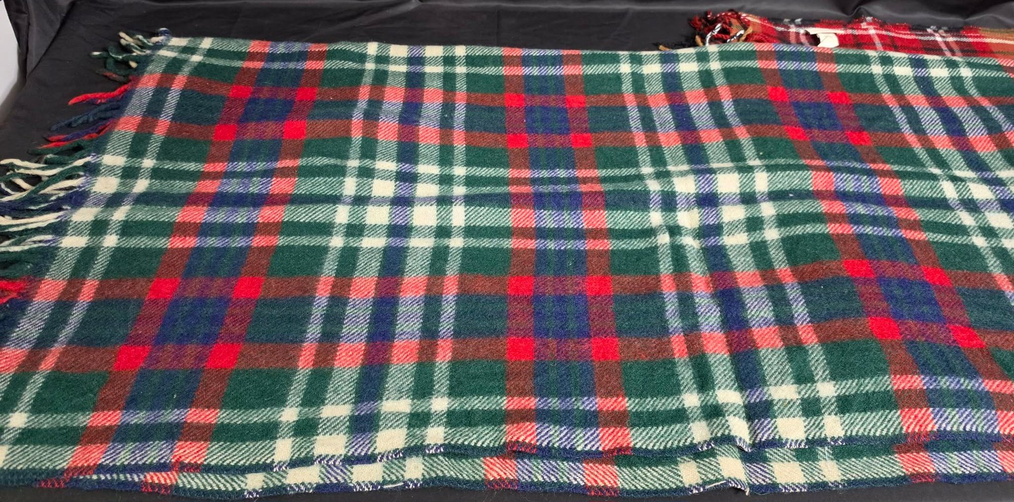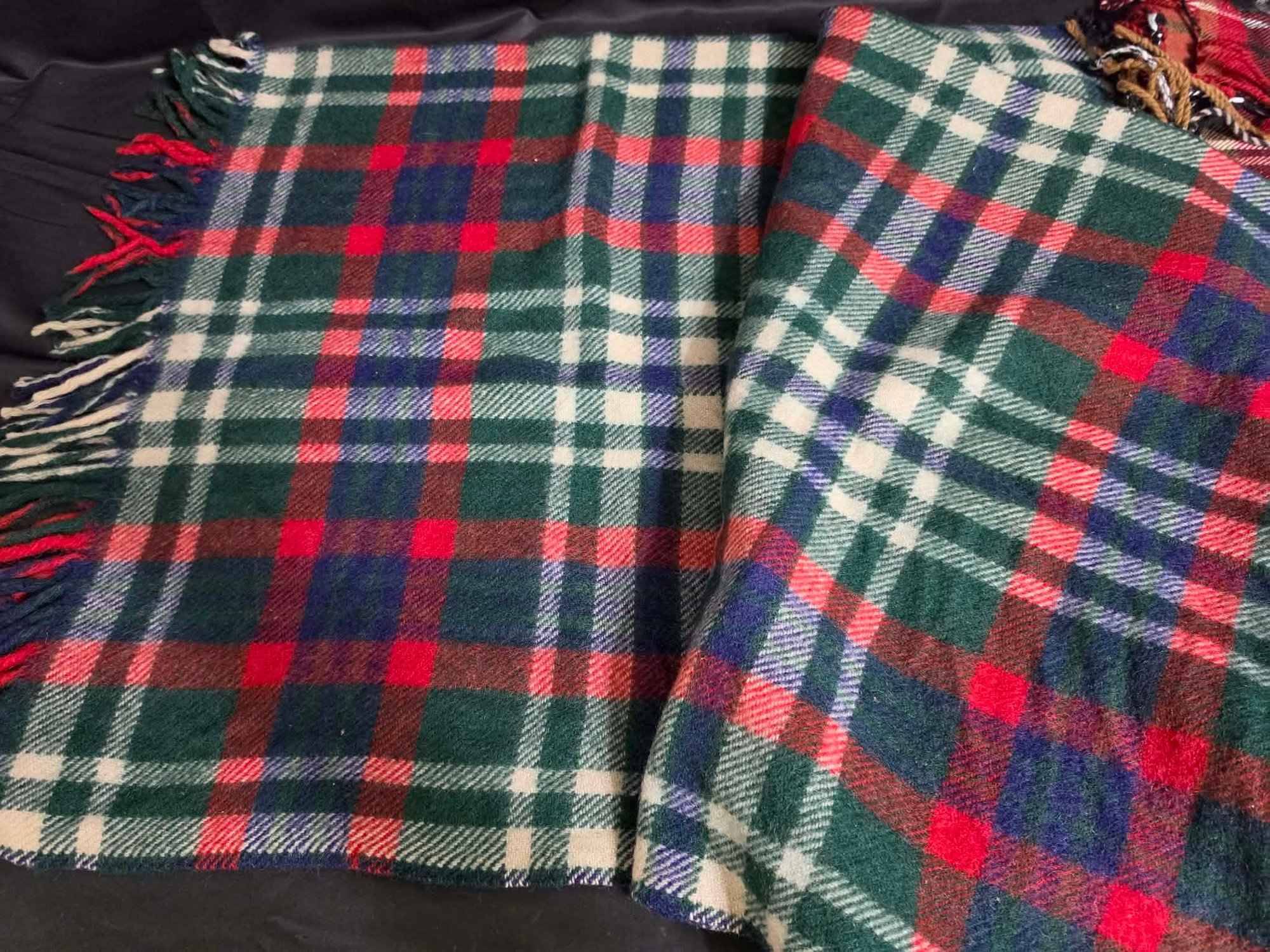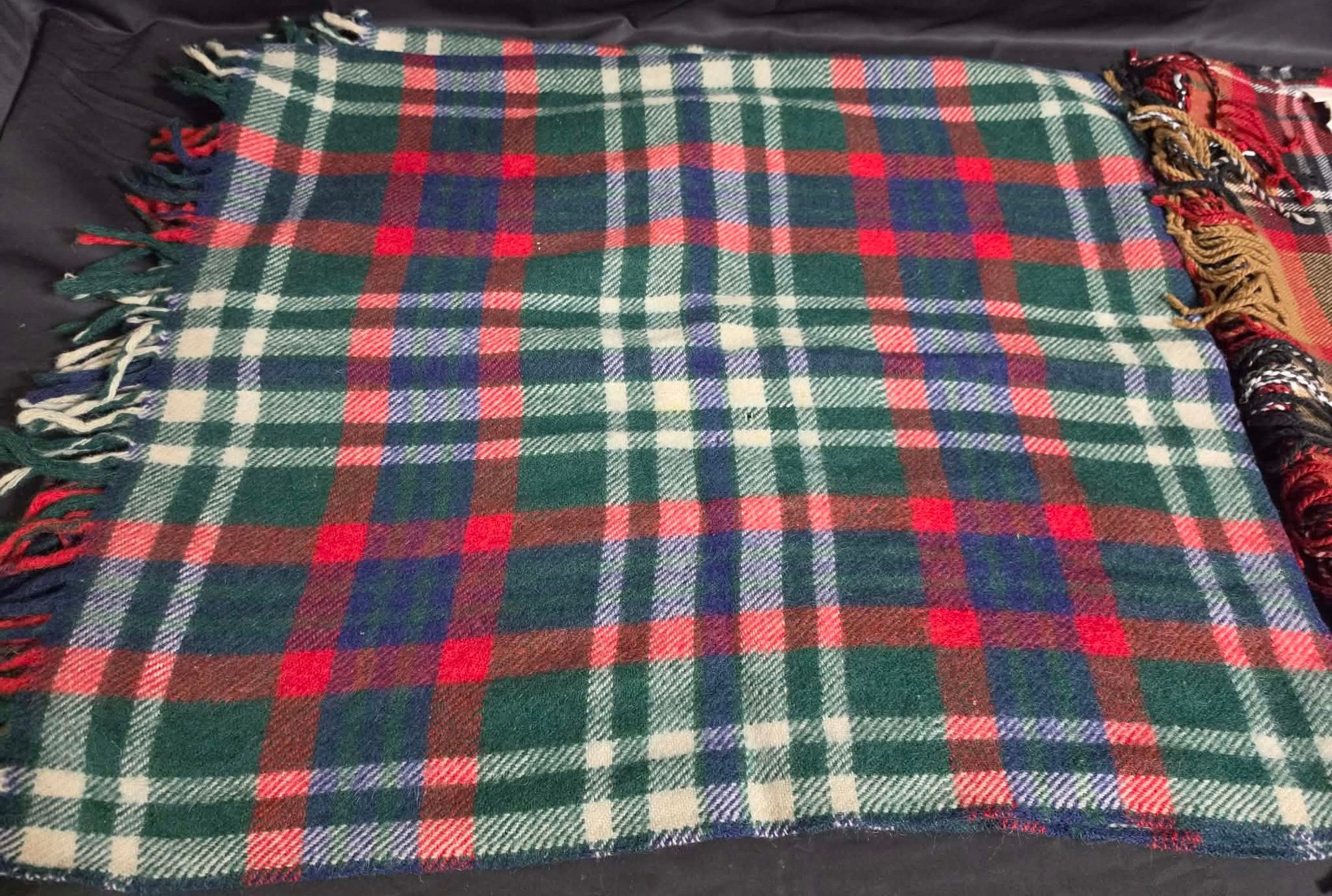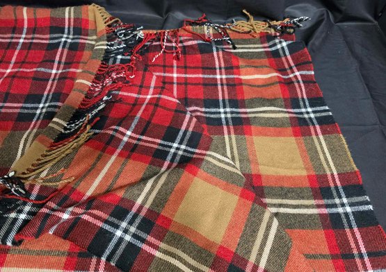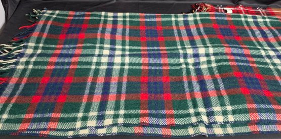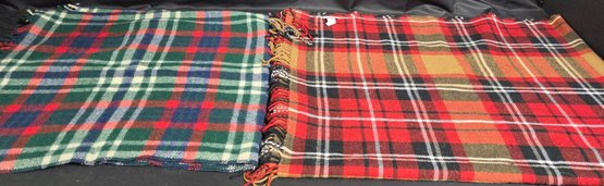 2 Throw Blankets. One appears to be wool. Measures 44 x 46 & 50 x 68 excluding the fringe.