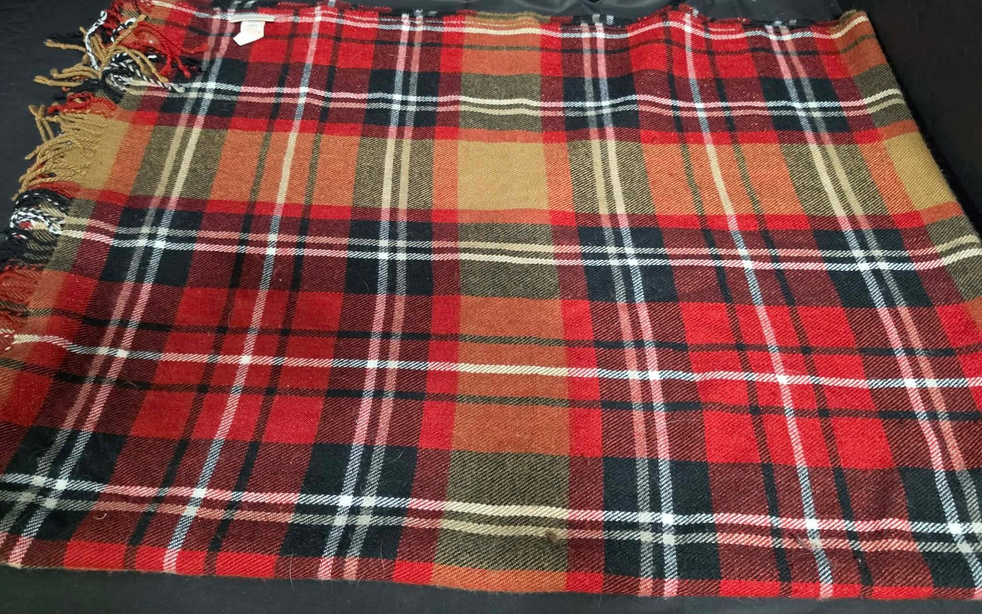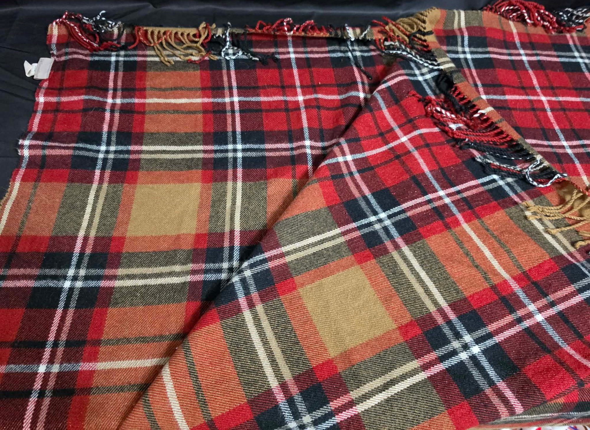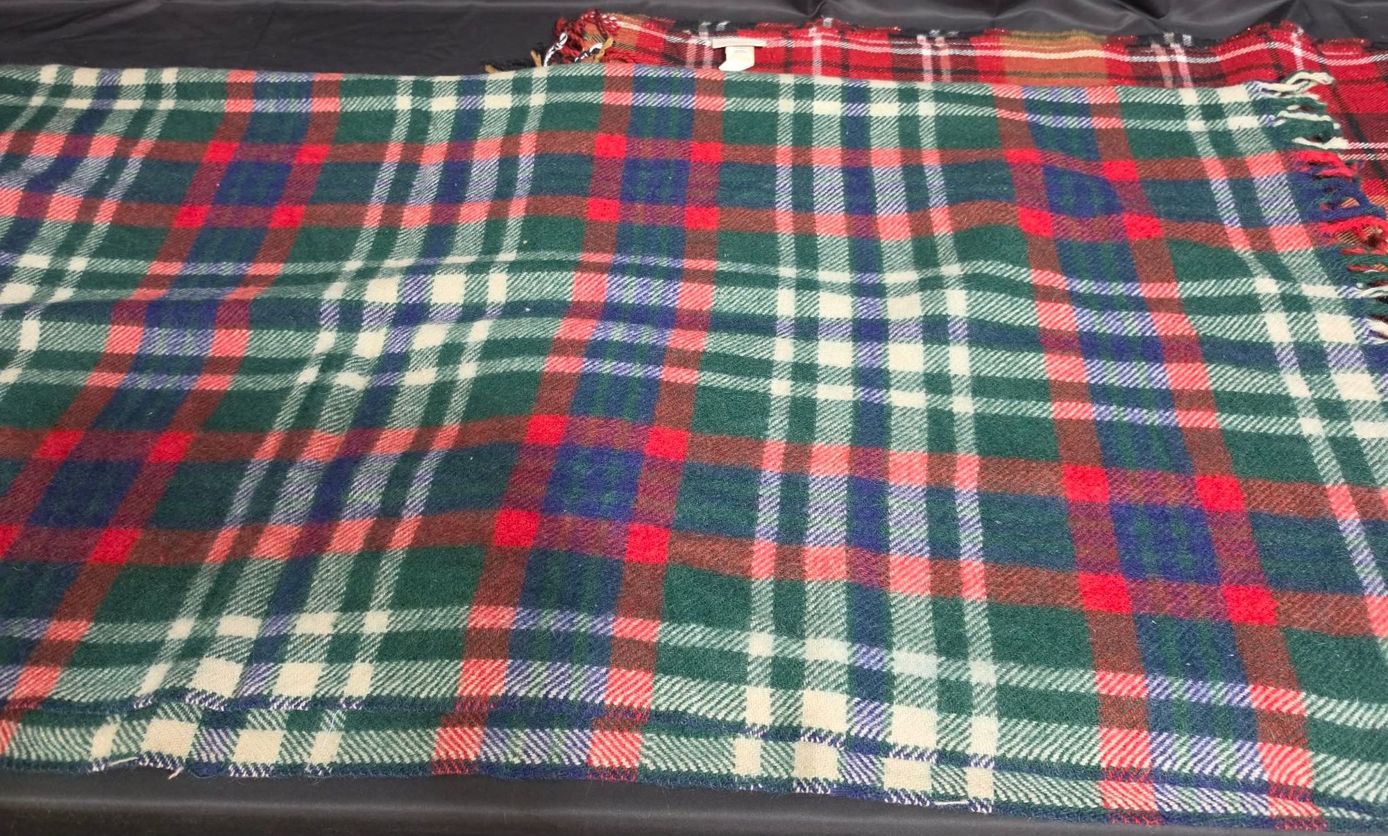 2 Throw Blankets. One appears to be wool. Measures 44 x 46 & 50 x 68 excluding the fringe.