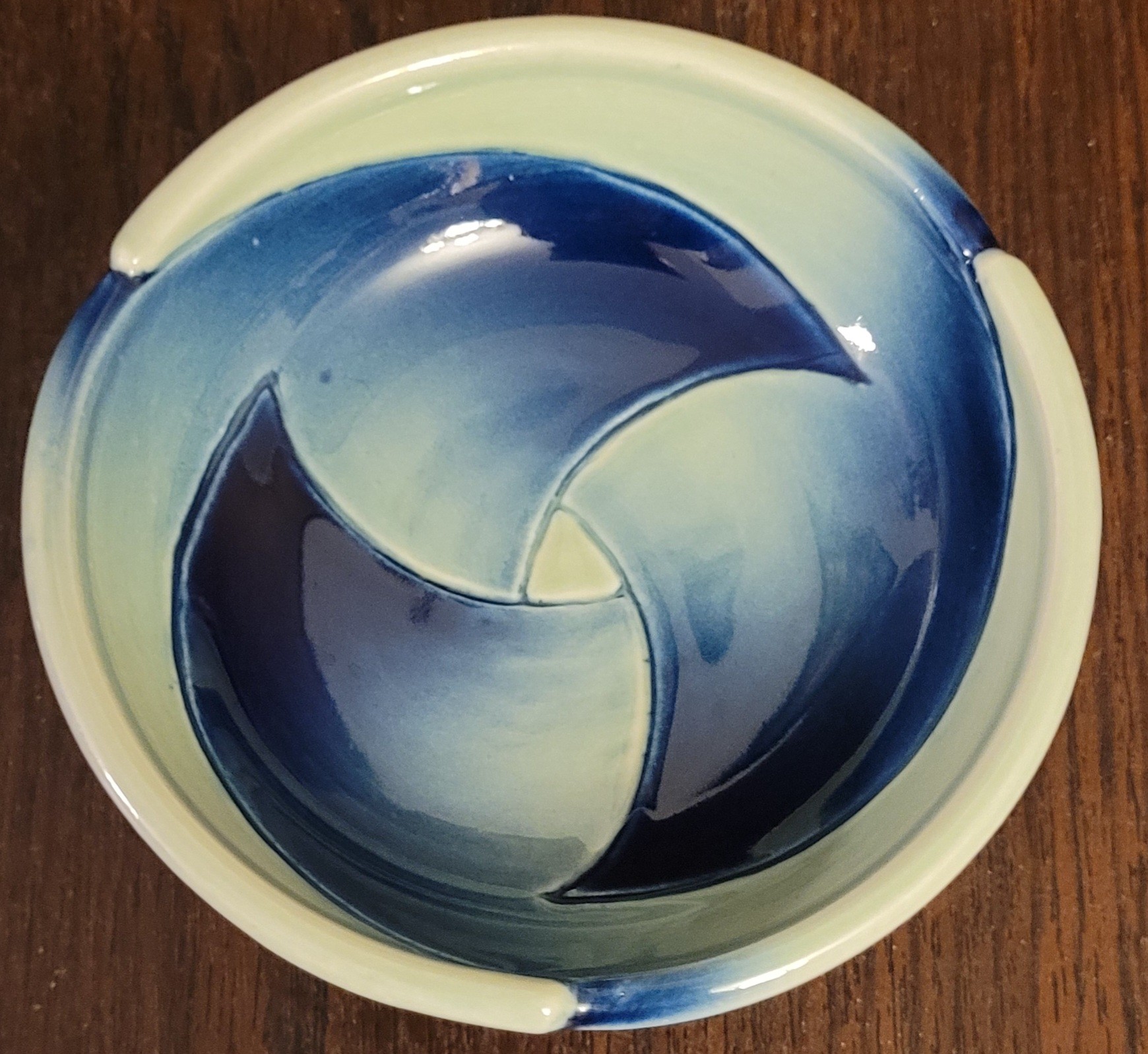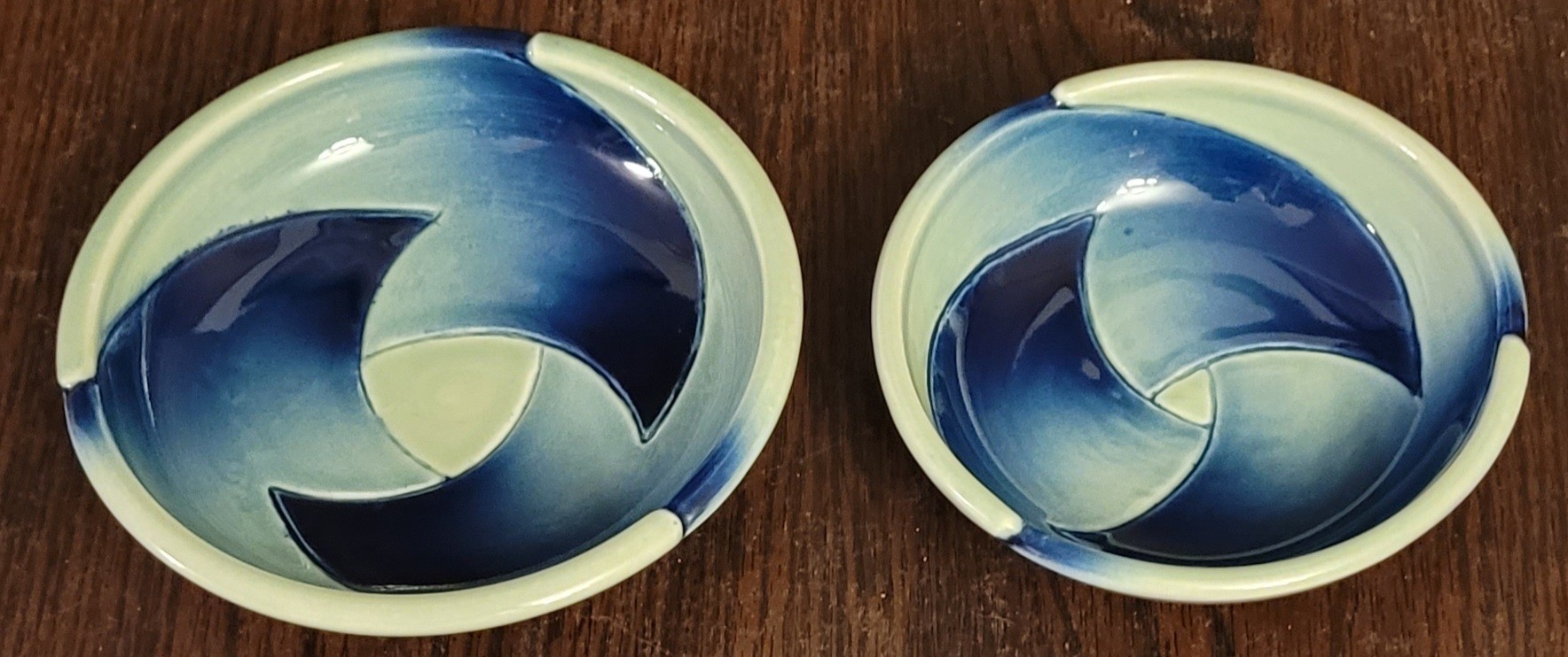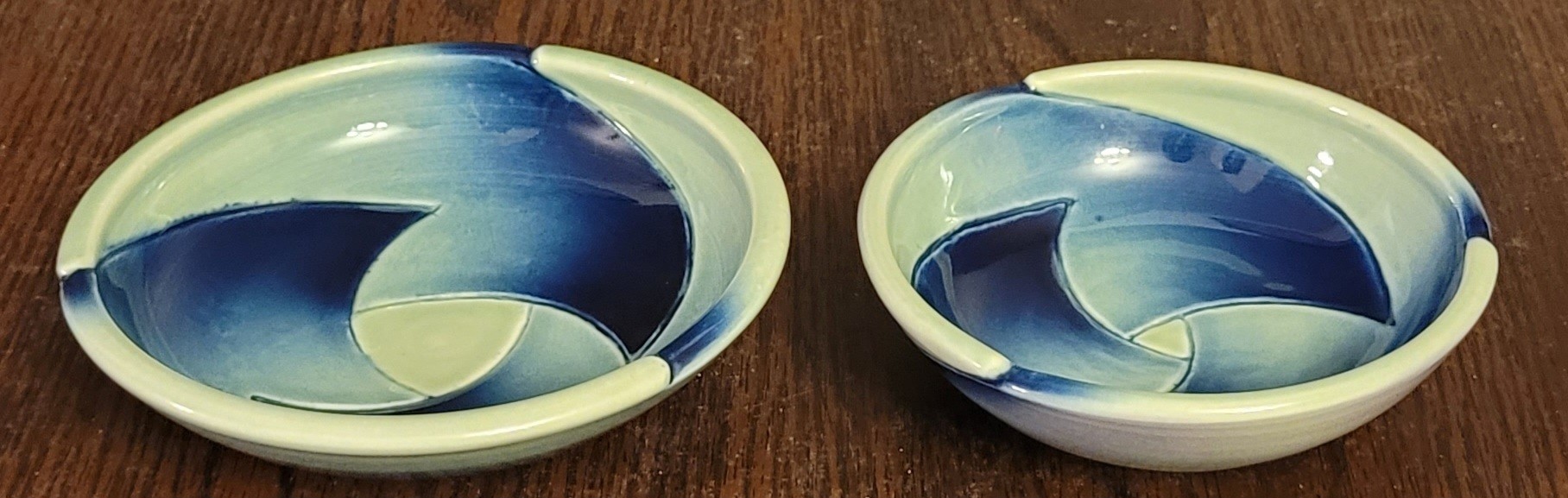 These measure 5" in diameter and 5.75" in diameter. These 2 bowls match another one in this auction. See pictures for details.