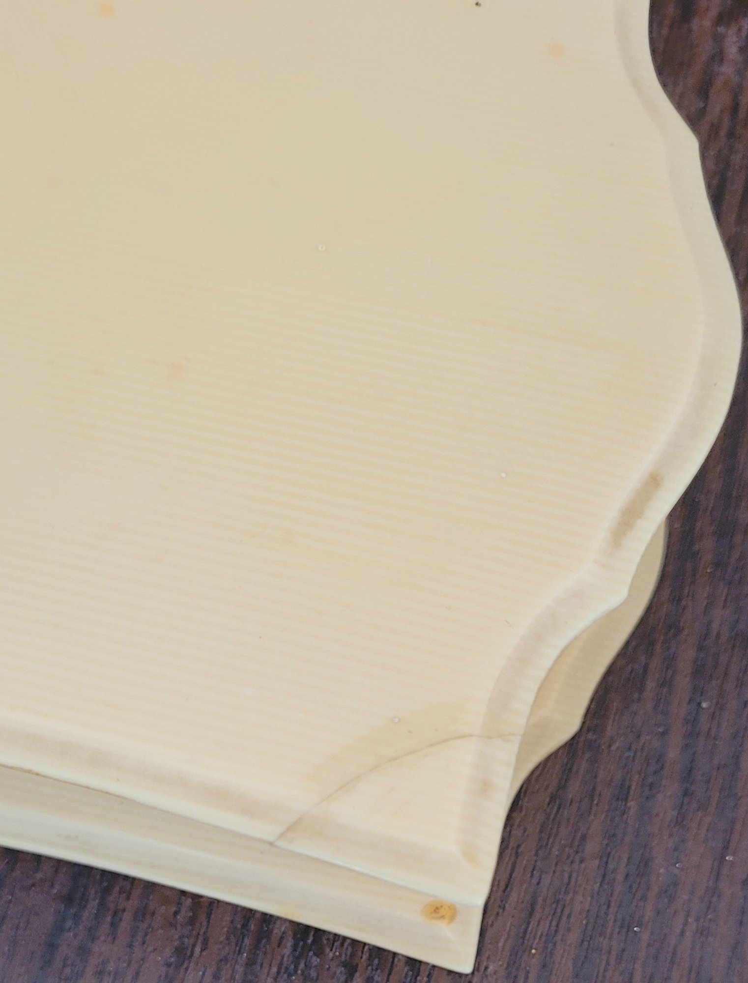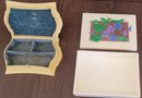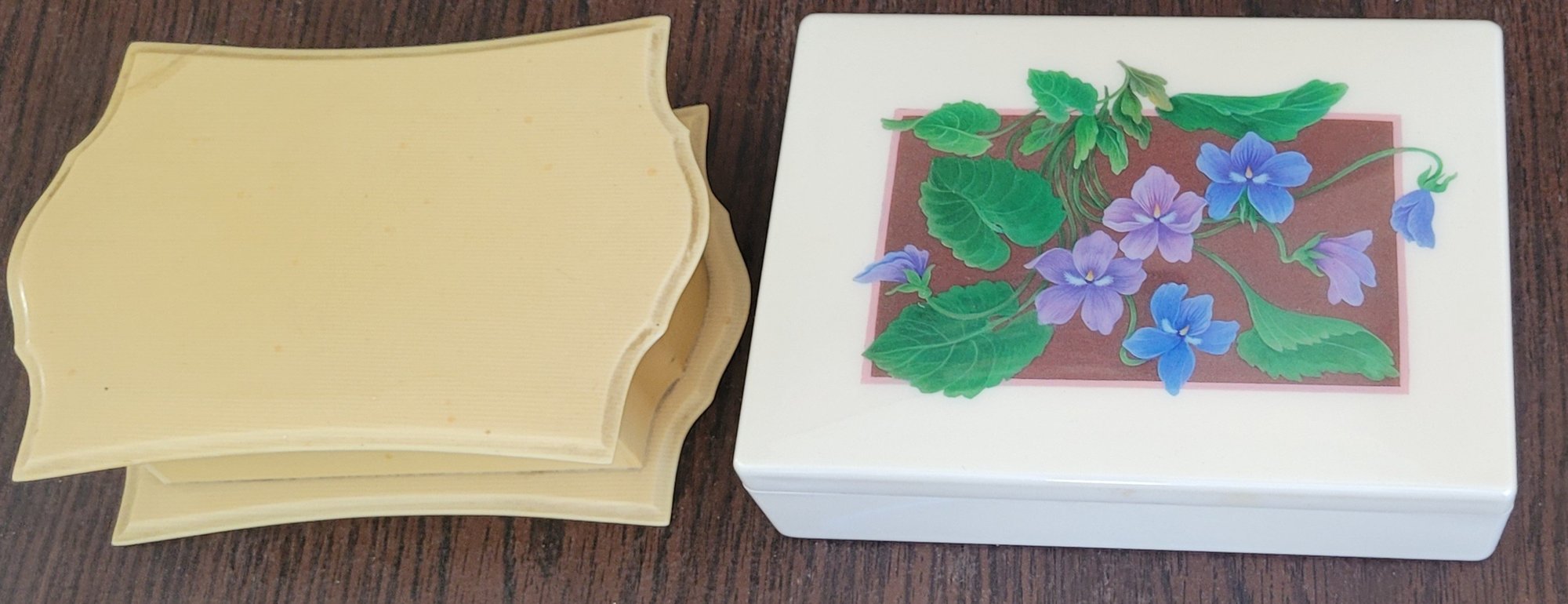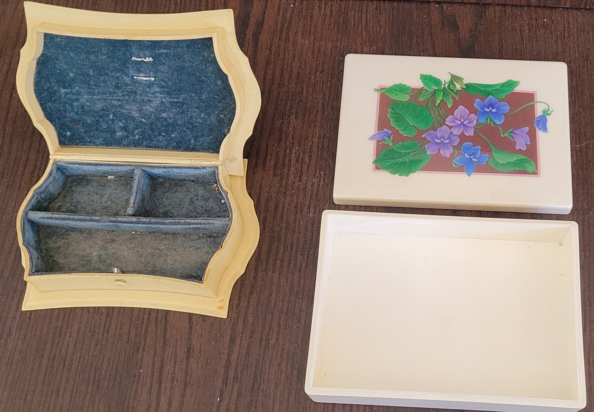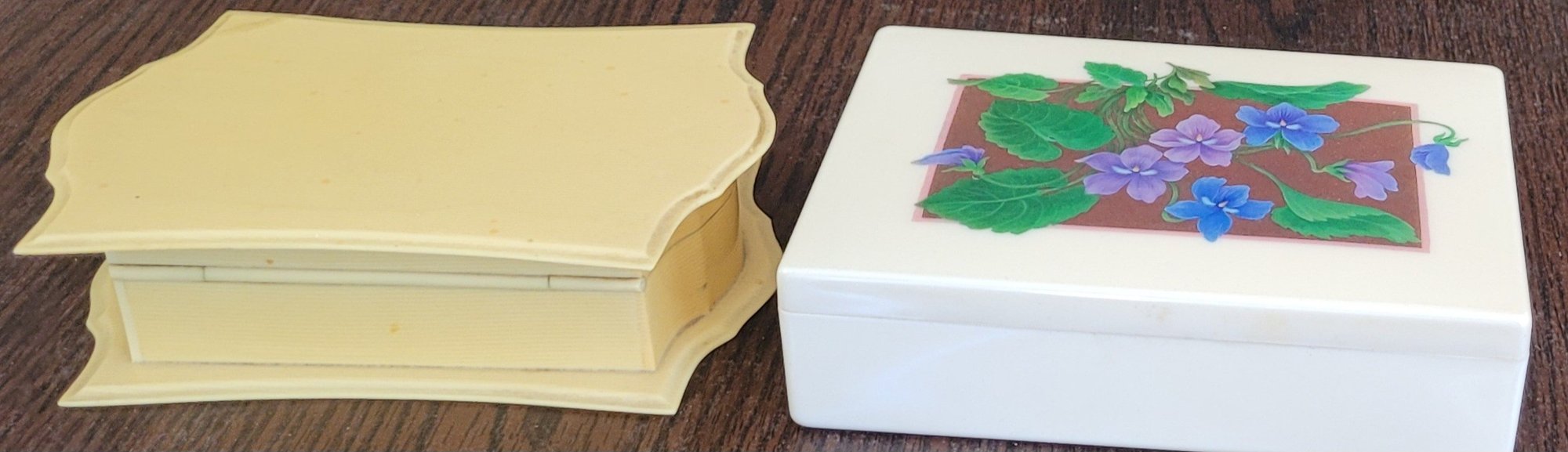 One of these the lid comes off and measures 6.25" long by 4.5" wide by 1.5" tall and the other one measures 6.25" long by 4.5" wide by 1.75" tall. The one has a corner that has been fixed. These are made of a hard plastic. See pictures for details.