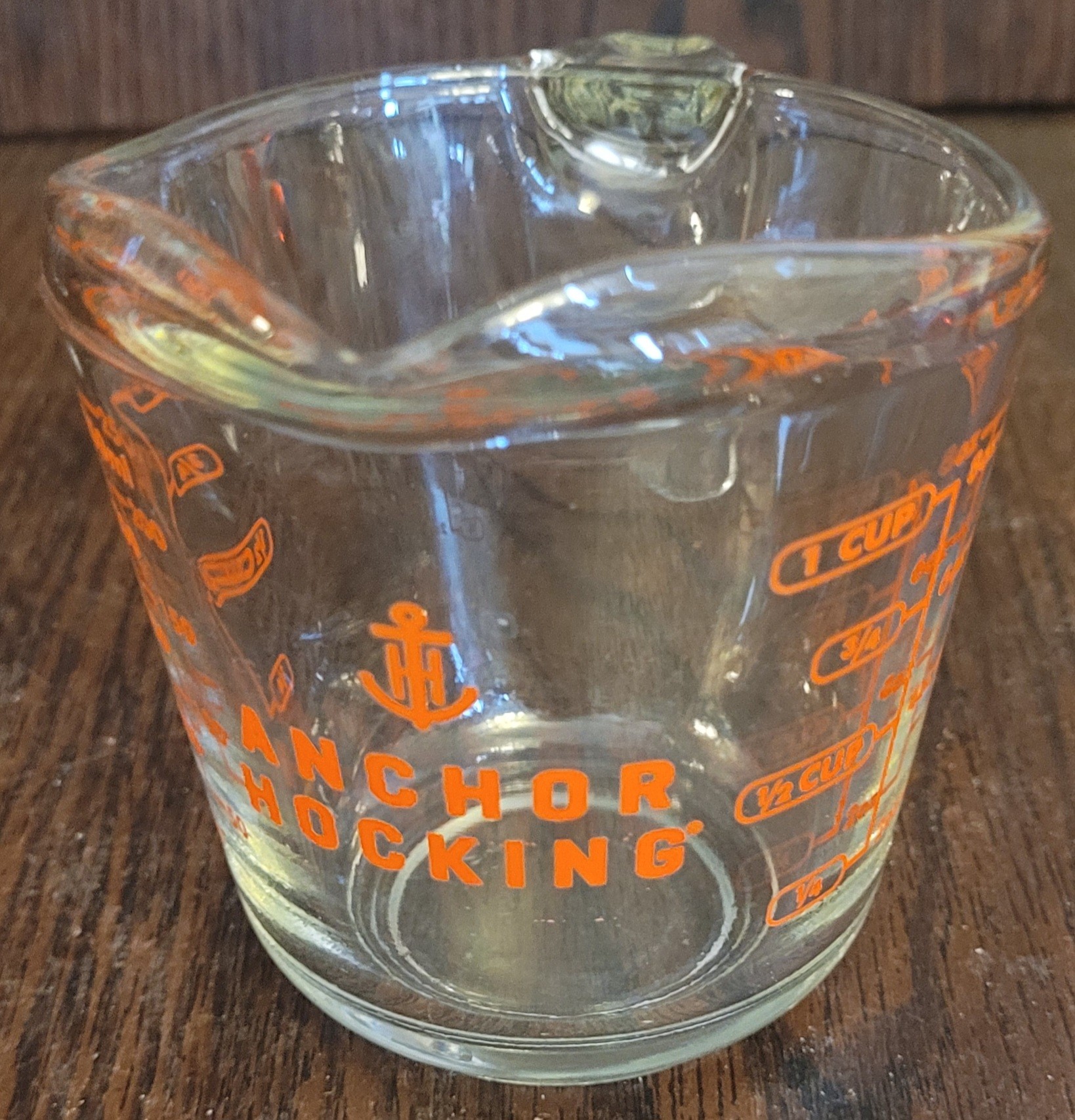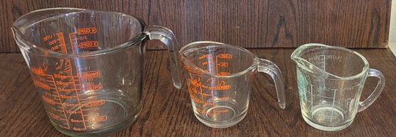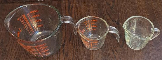 Two of these are Anchor hocking and one is Oven Basic. Two holds 1 cup and one is a 4 cup. See pictures for details.