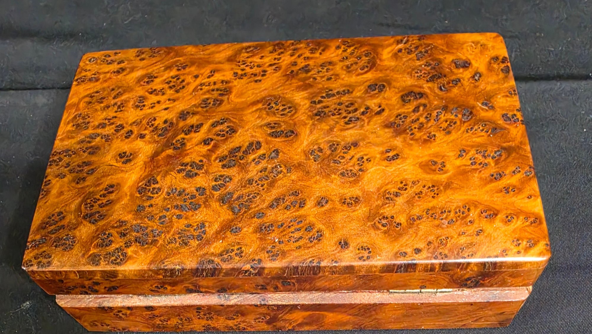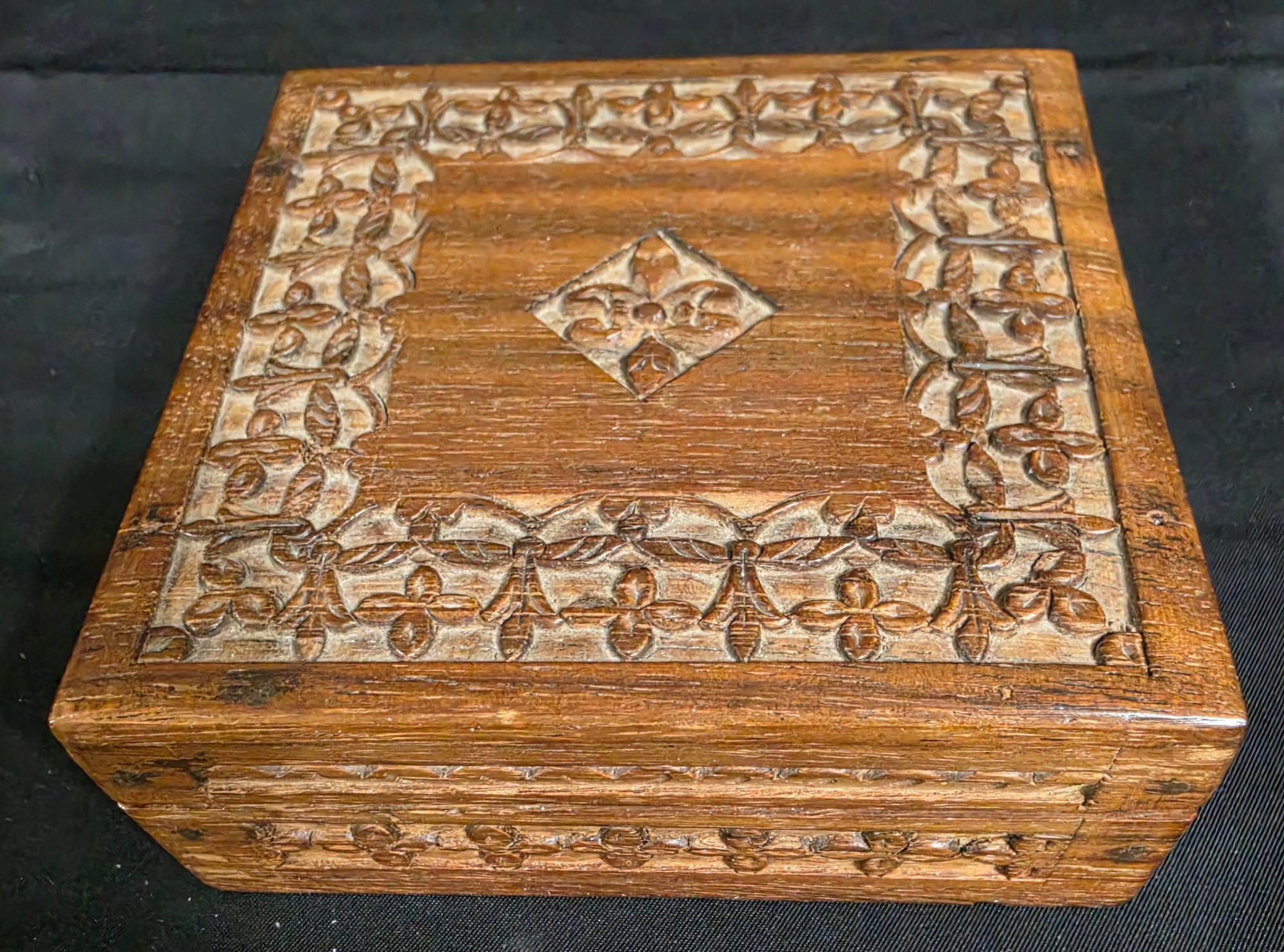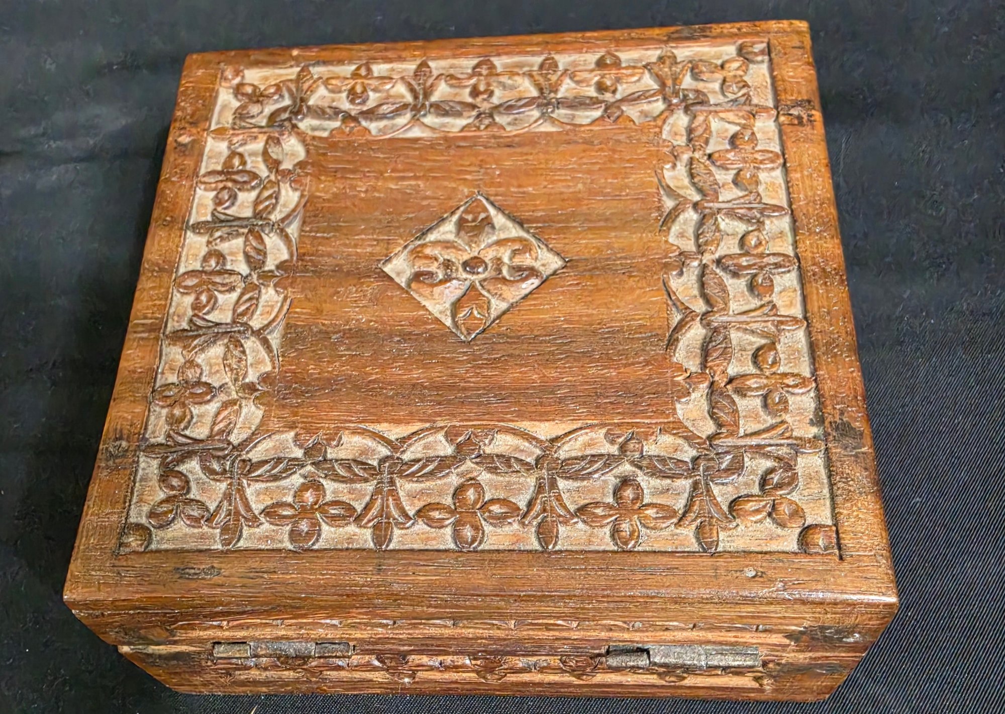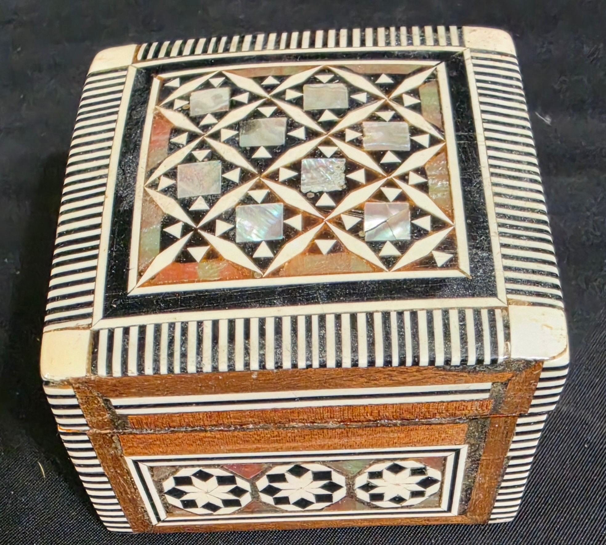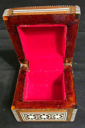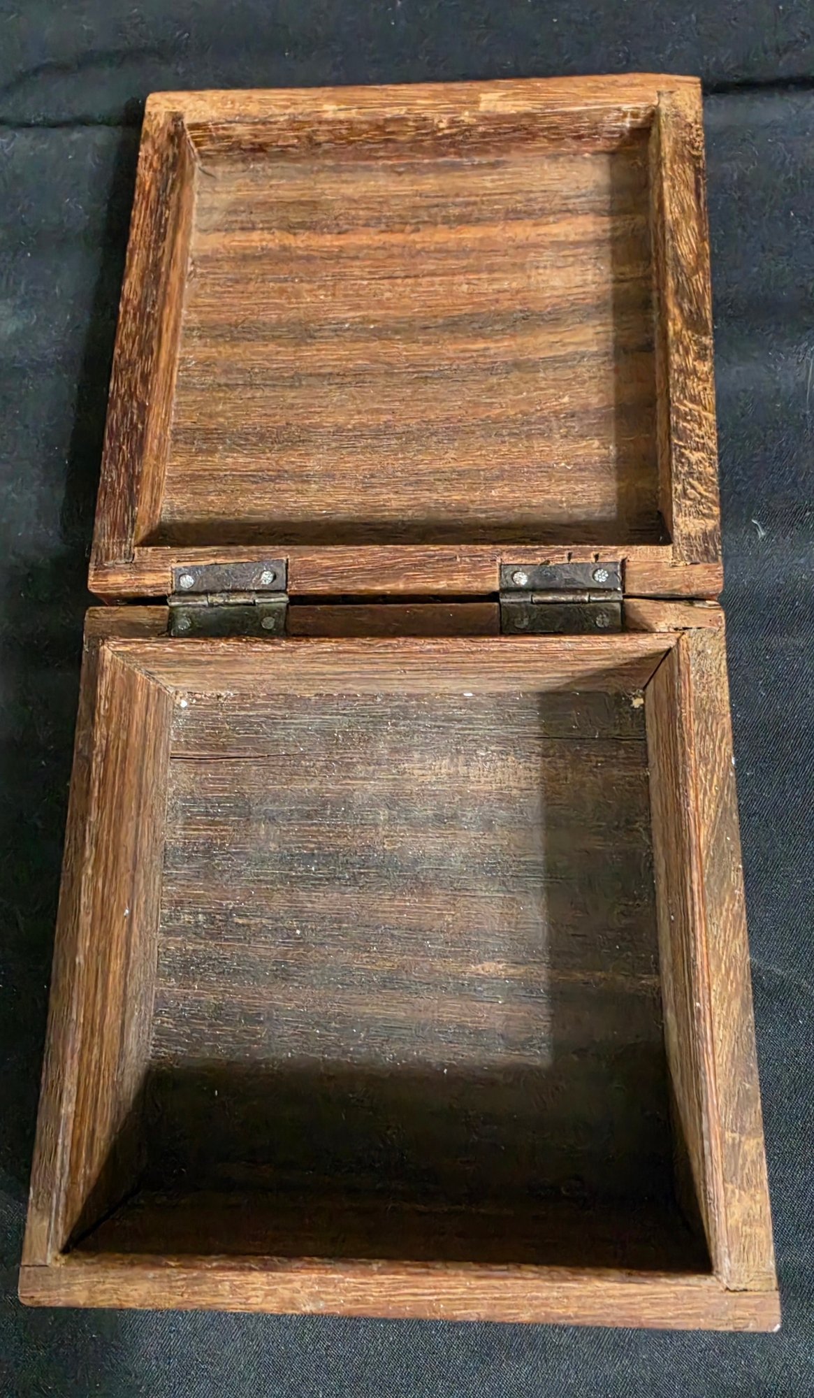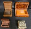 4 small wooden trinket boxes. The largest measures 6.25 x 4 x 2 and the smallest measures 3 x 2 x 1.5. Please see all pics for details