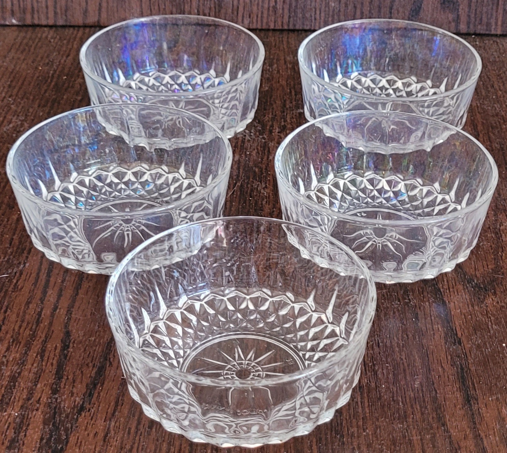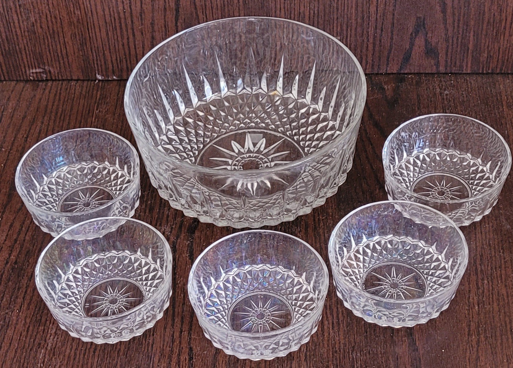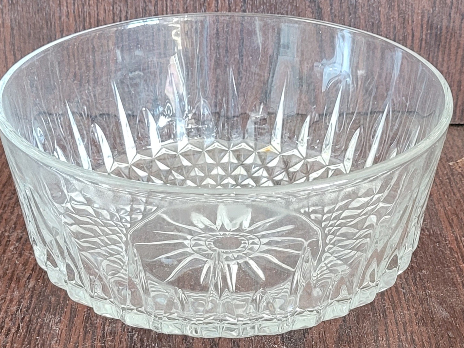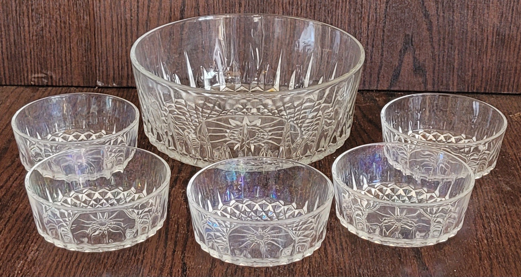 The large bowl measures 8" in diameter by 3.75" tall and the bowls measures 4.125" in diameter by 1.875" tall. See pictures for details.