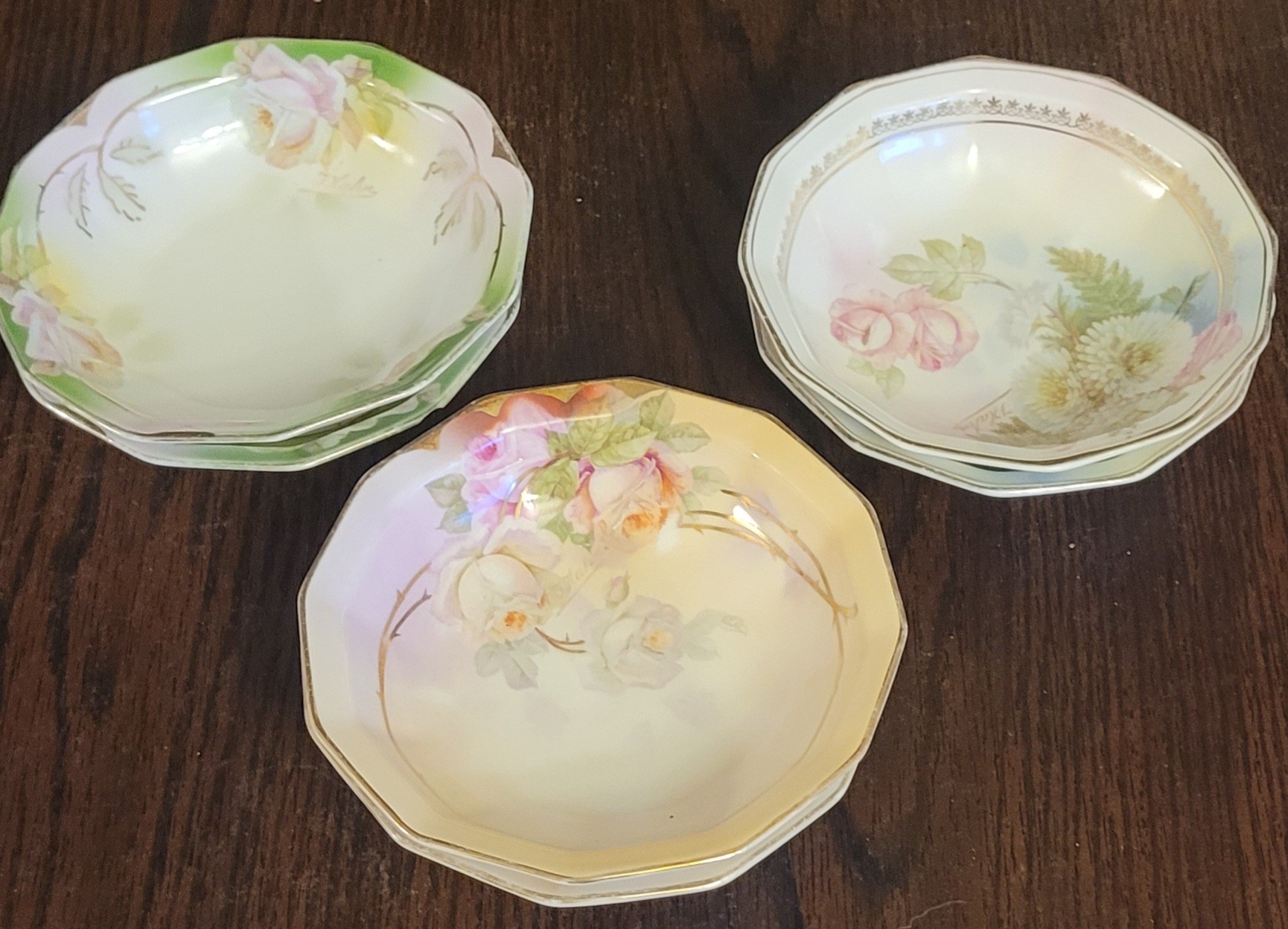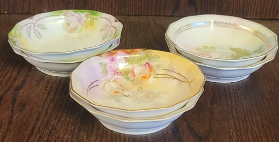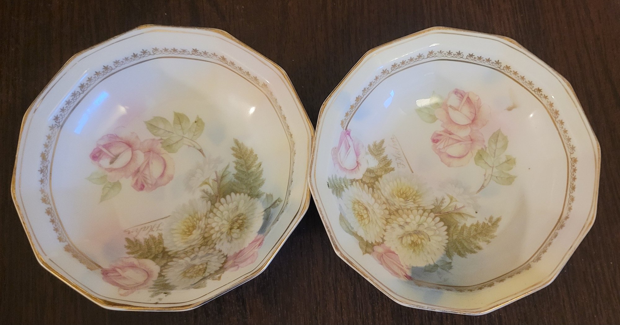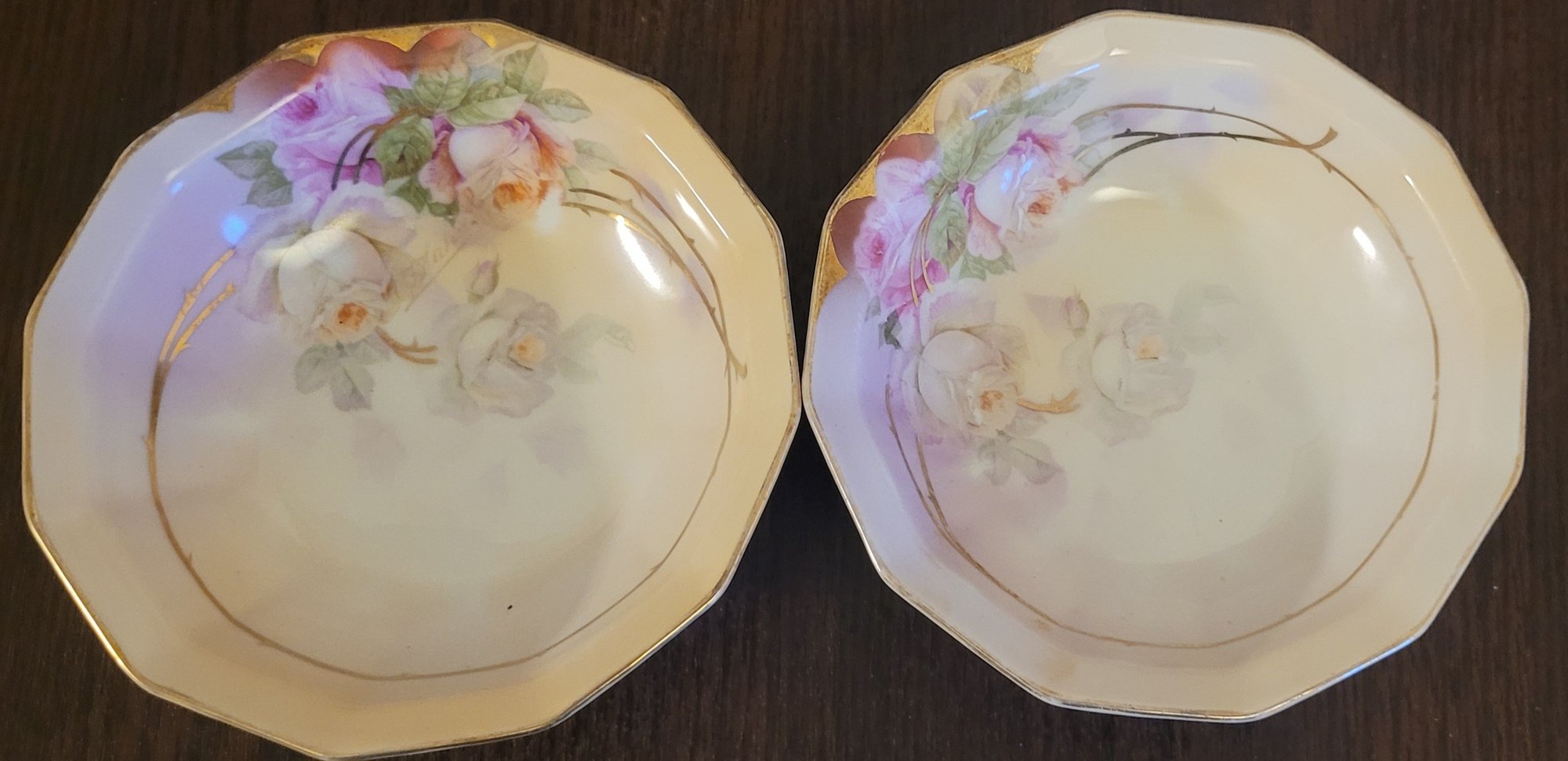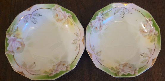 These appear to be fruit bowls. They each measure 5.375" in diameter by 1.5" tall. One does have a chip on the bottom of it. This lot comes with 2 bowls with each design. See pictures for details.