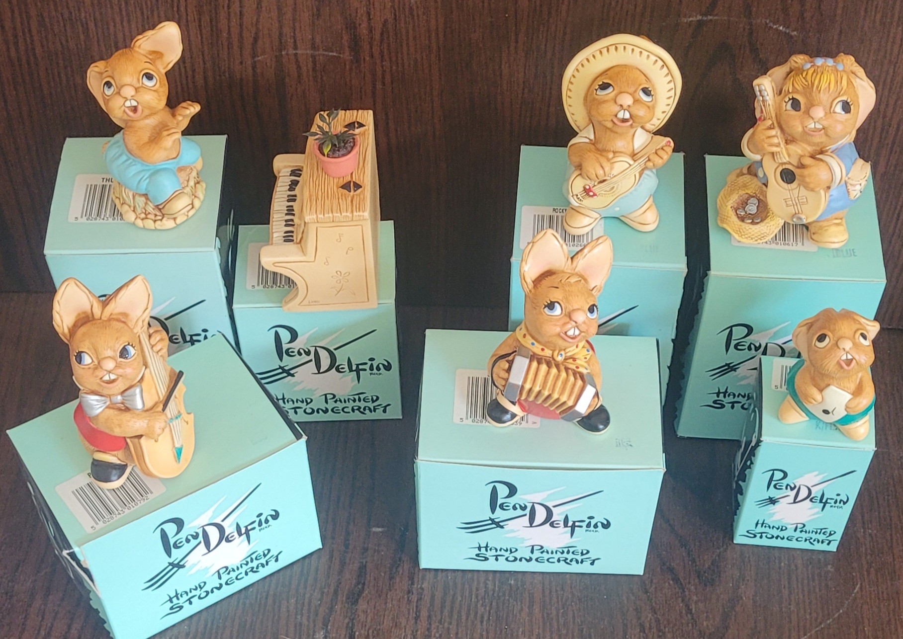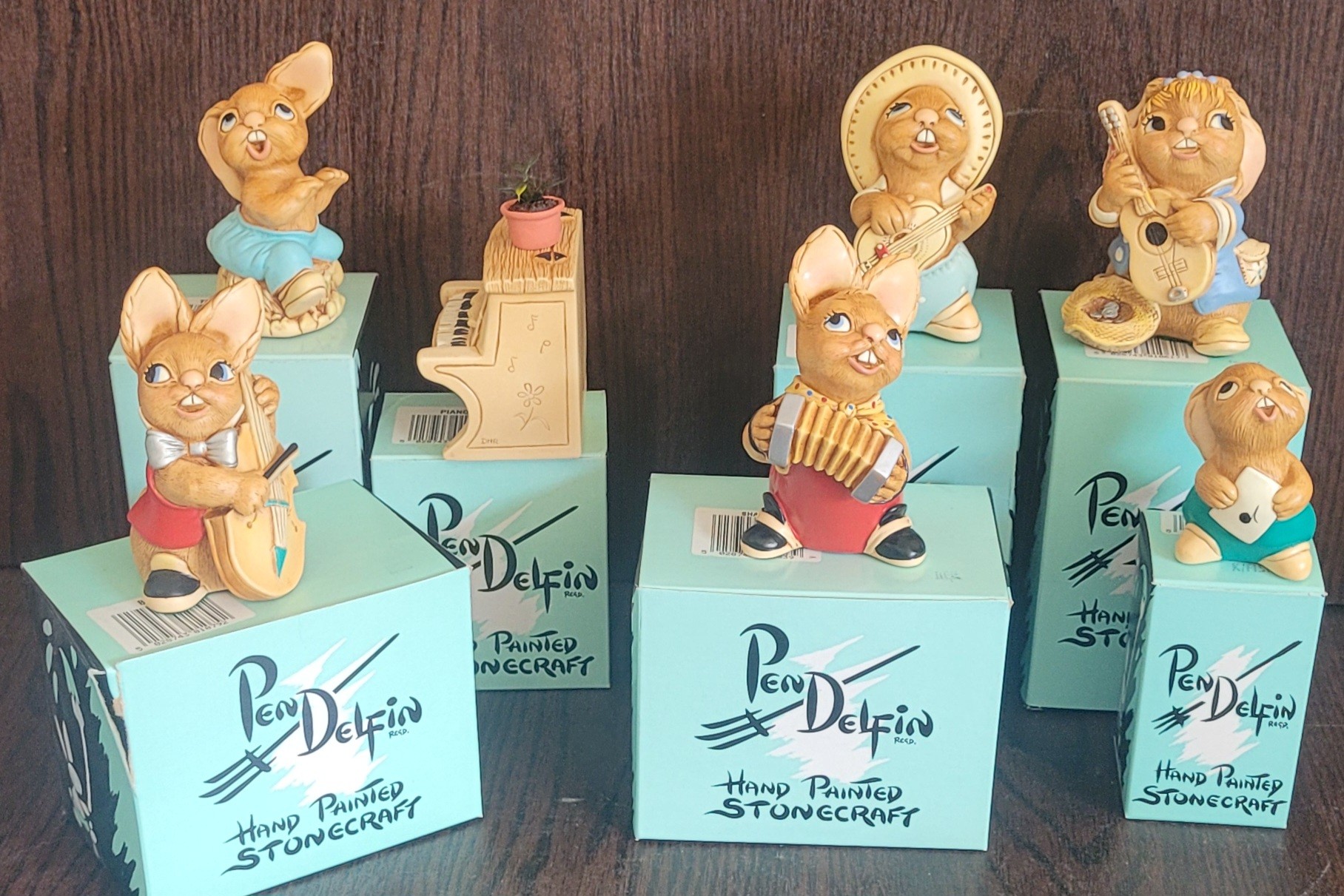 All of these come in the original boxes. One of the rabbits has been repair on its instrument. See pictures for details.