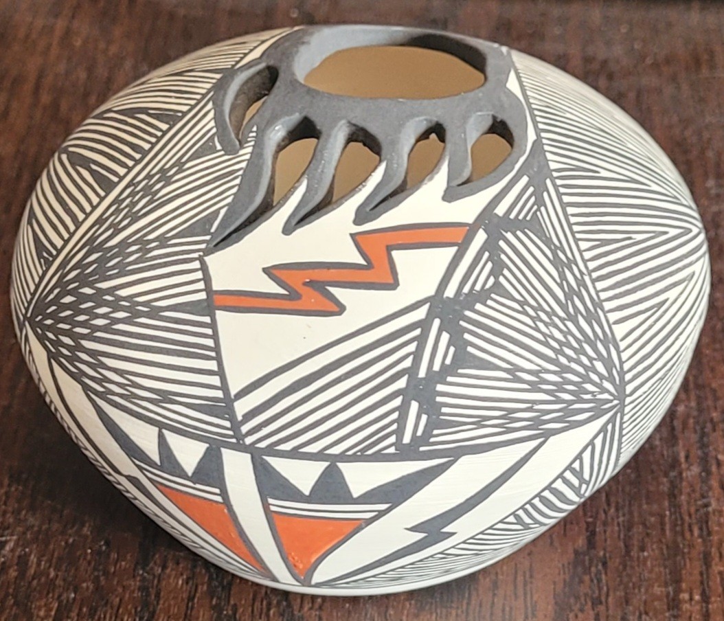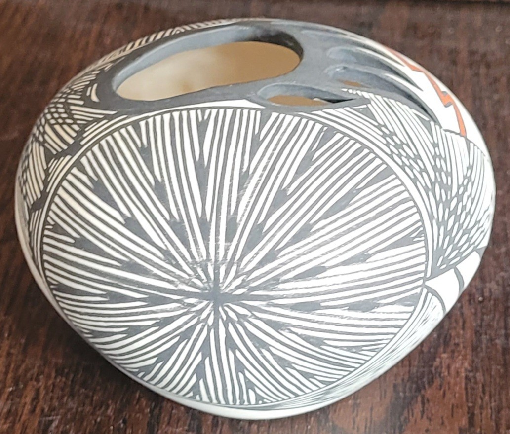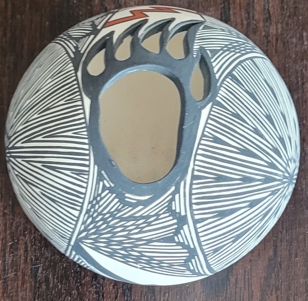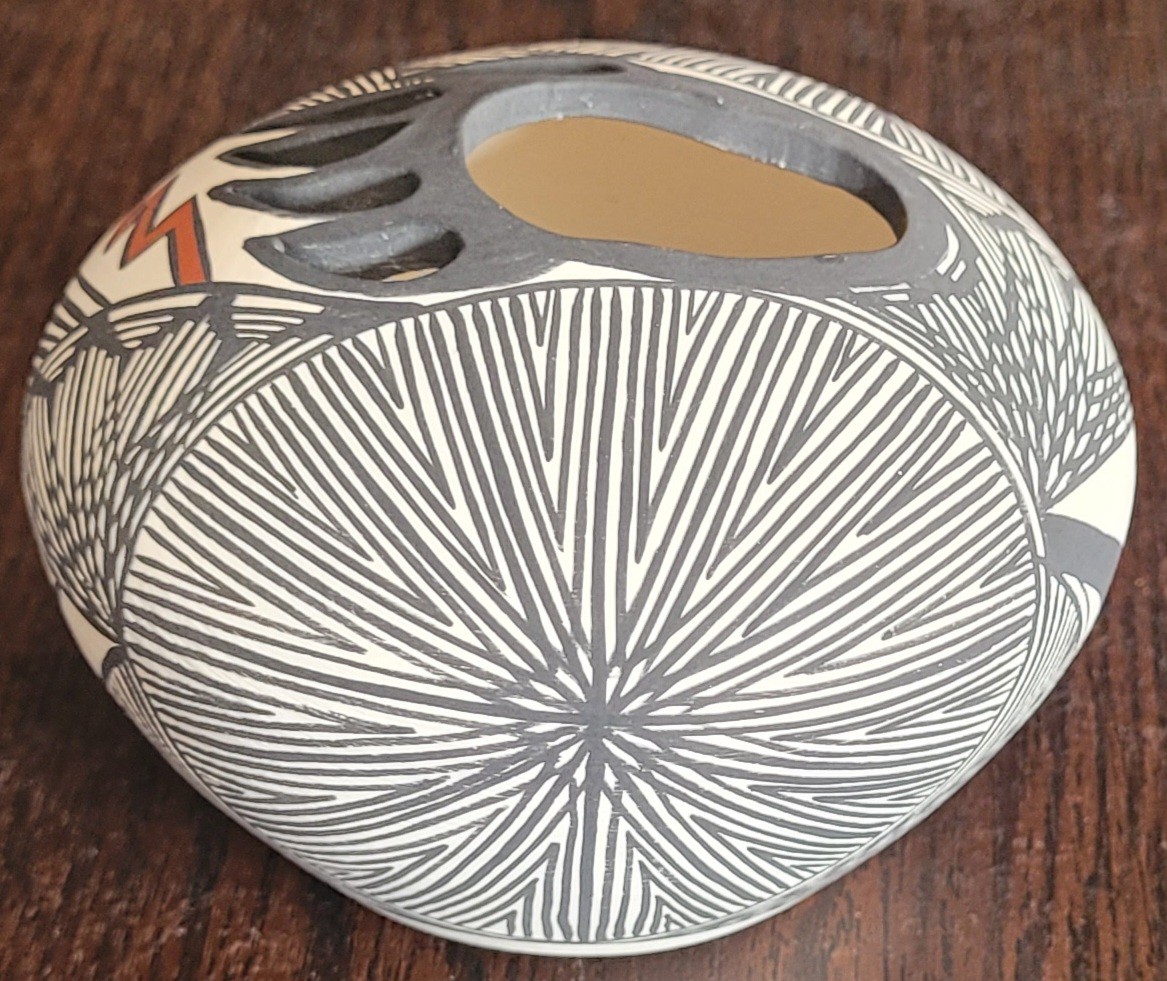 This measures 4.25" in diameter by 3" tall. This is in very good condition. It is signed on the bottom. See pictures for details.