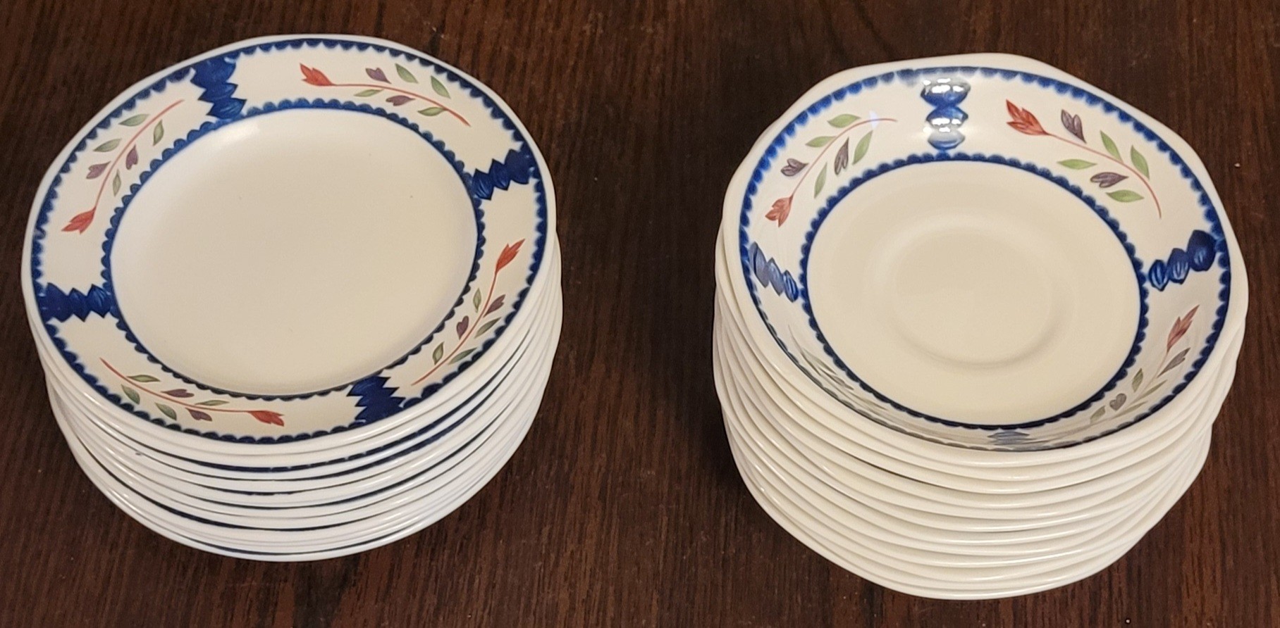 Each of these come with 12 in the set. Bread plates measure 6" in diameter and the fruit bowls measure 5.625" in diameter. All are in good condition. See pictures for details.