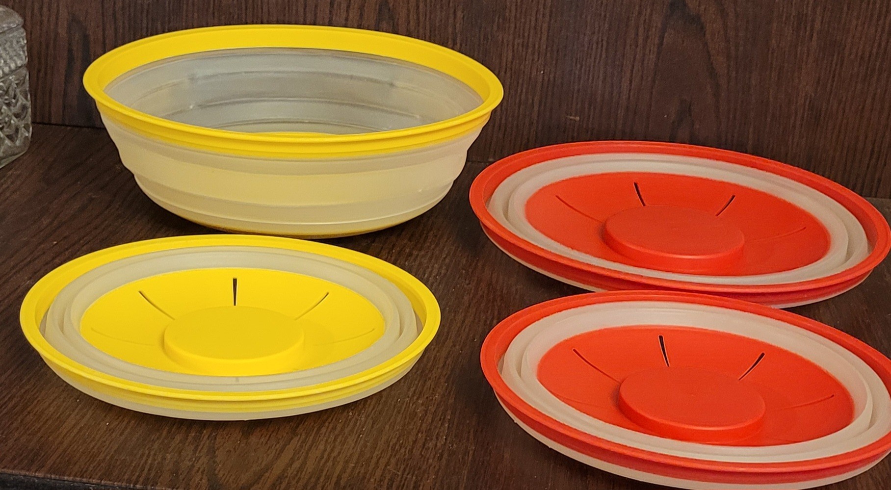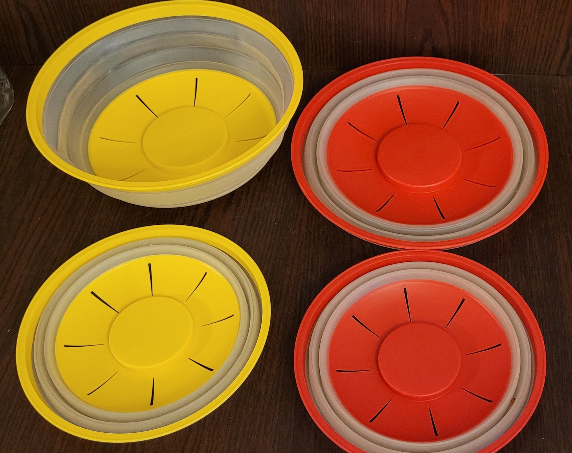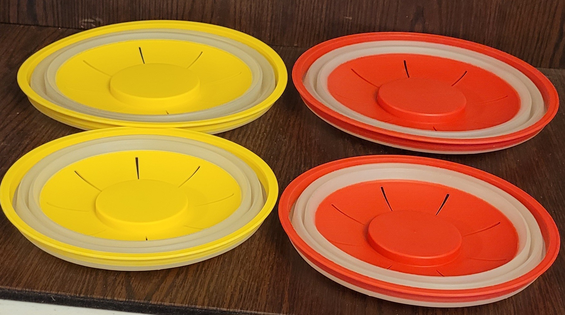 This lot comes with 2 different sizes. One measures 10.5" in diameter and the other one measures 8.5" in diameter. See pictures for details.