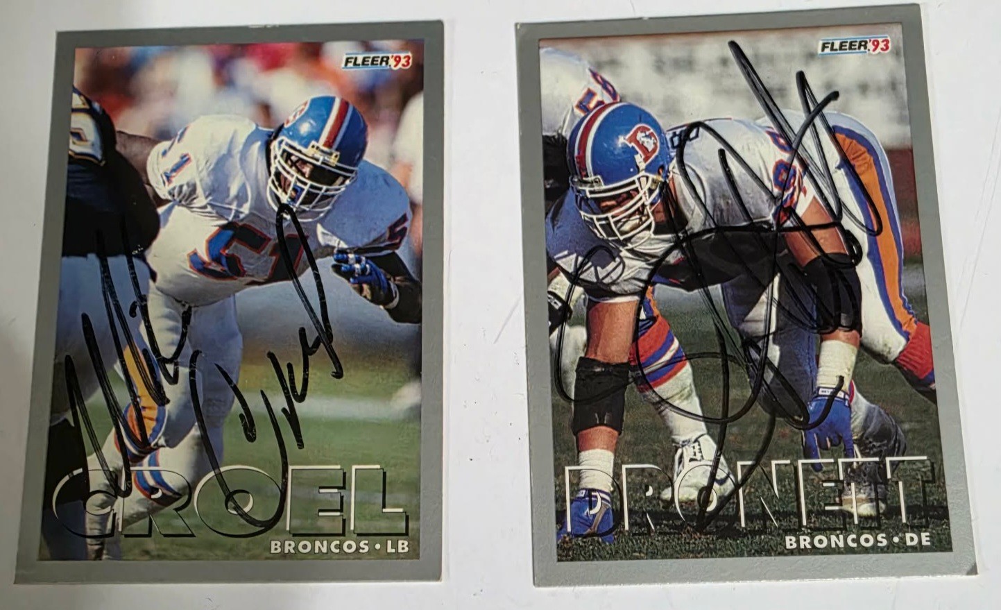 Pair of autographed Denver Bronco Cards.
