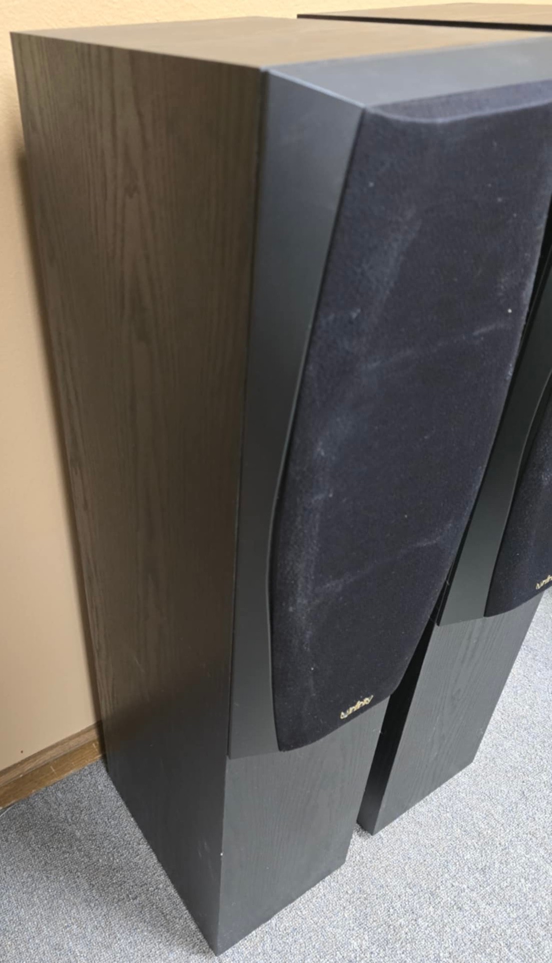 Pair of black Infinity Entra Three tower speakers. Untested. Measures 8.5 x 13.5 x 38.