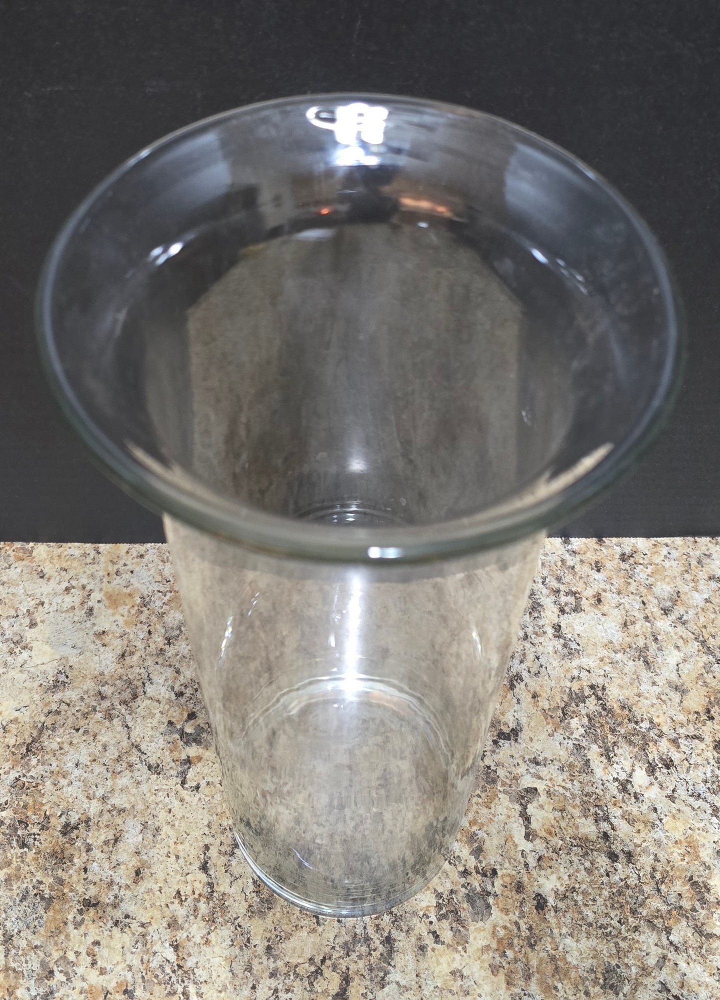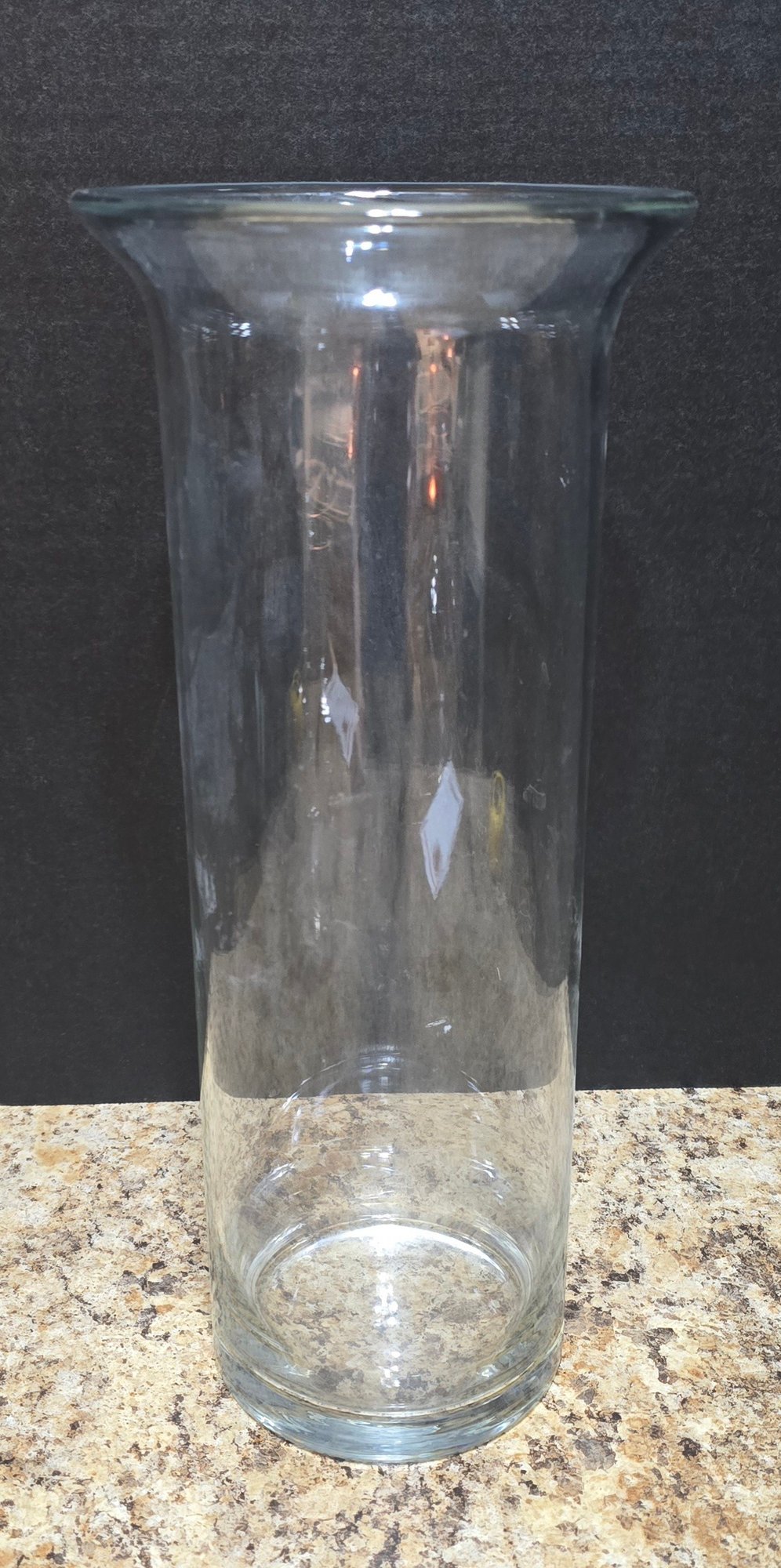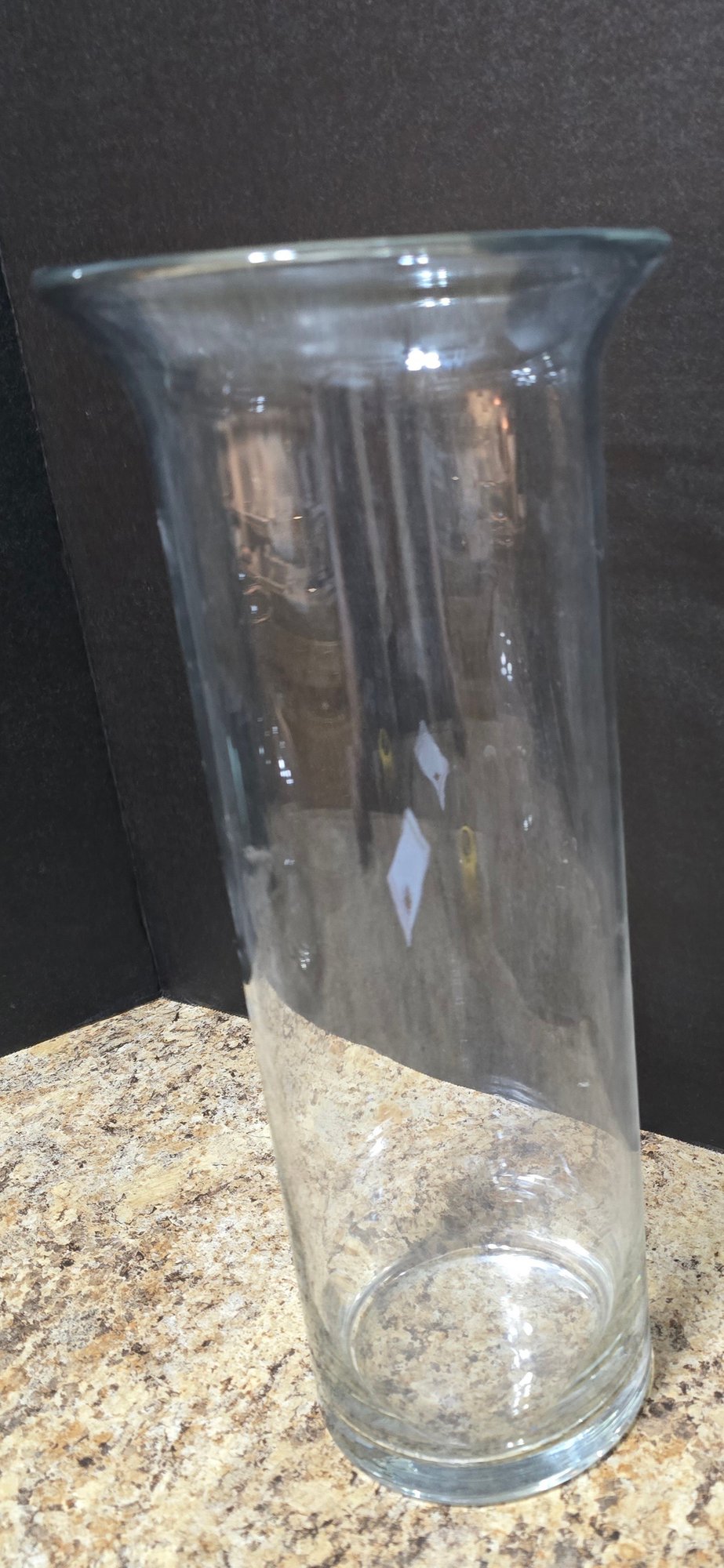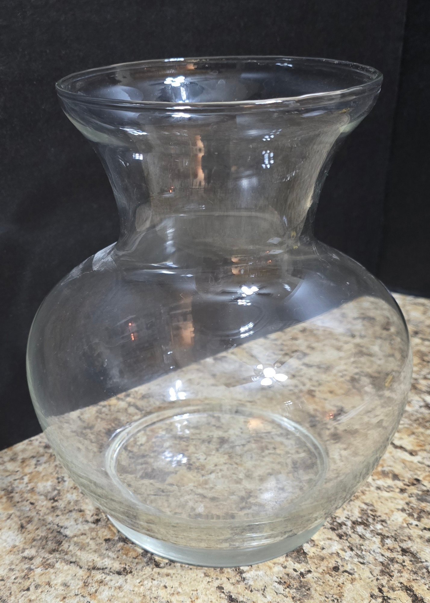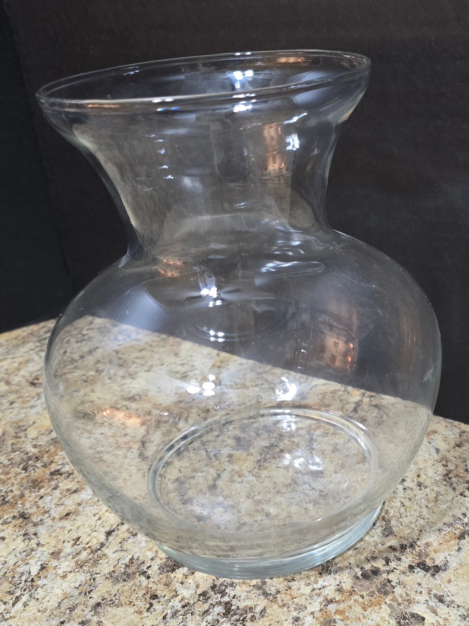 Pair of Clear Glass Vases. Measures 8 x 9 and 6 x 14. No cracks or chips noted. Please see all pics for details.