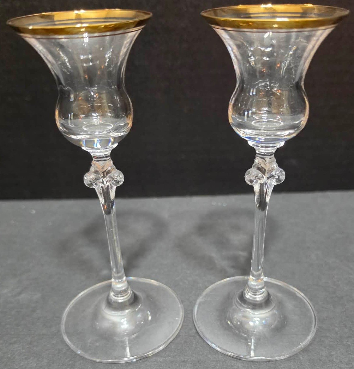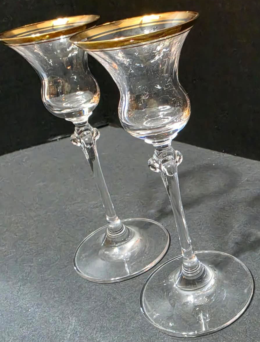 Pair of Mikasa Jamestown Gold crystal candlesticks. No cracks or chips noted. Measures 7h.