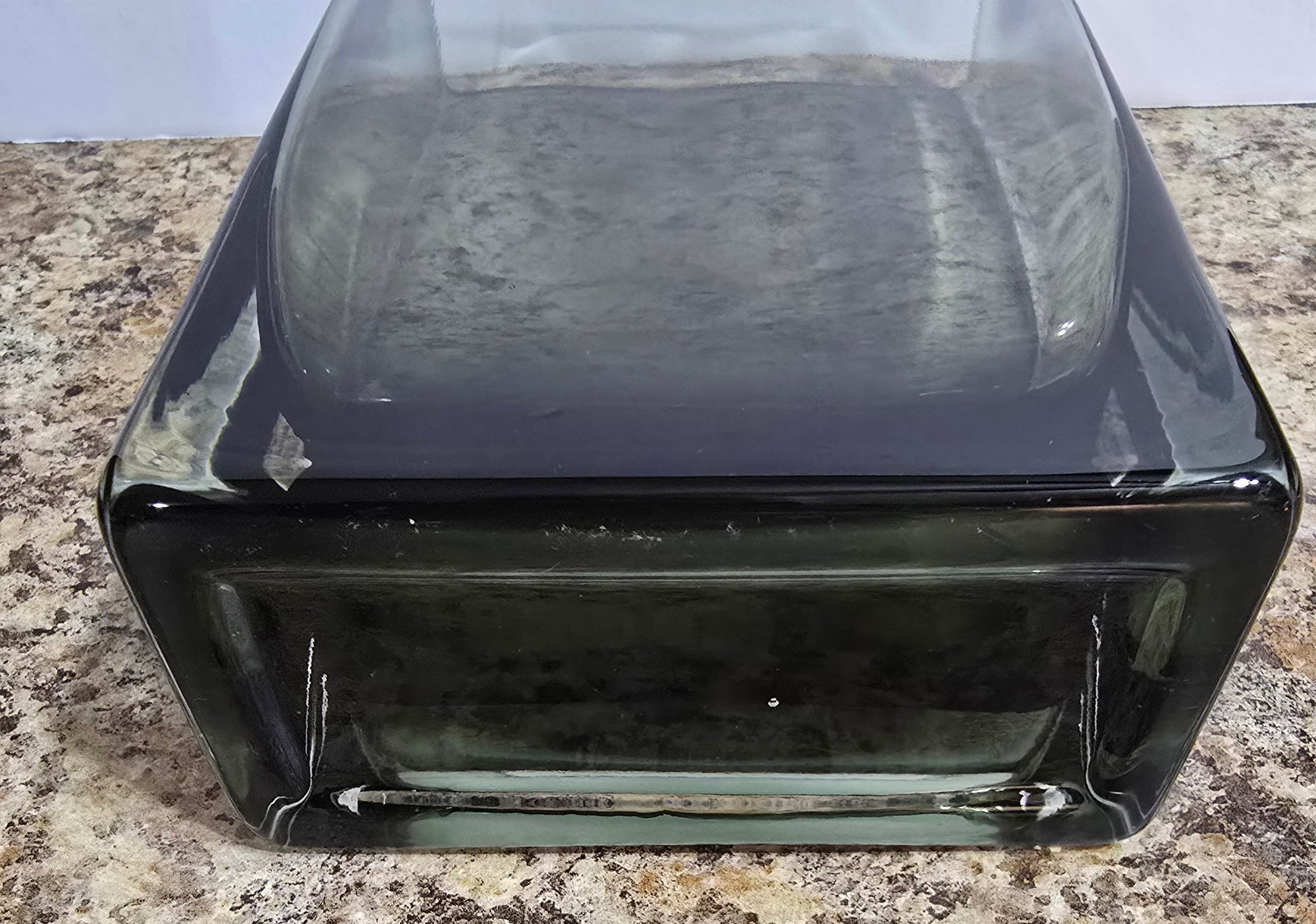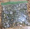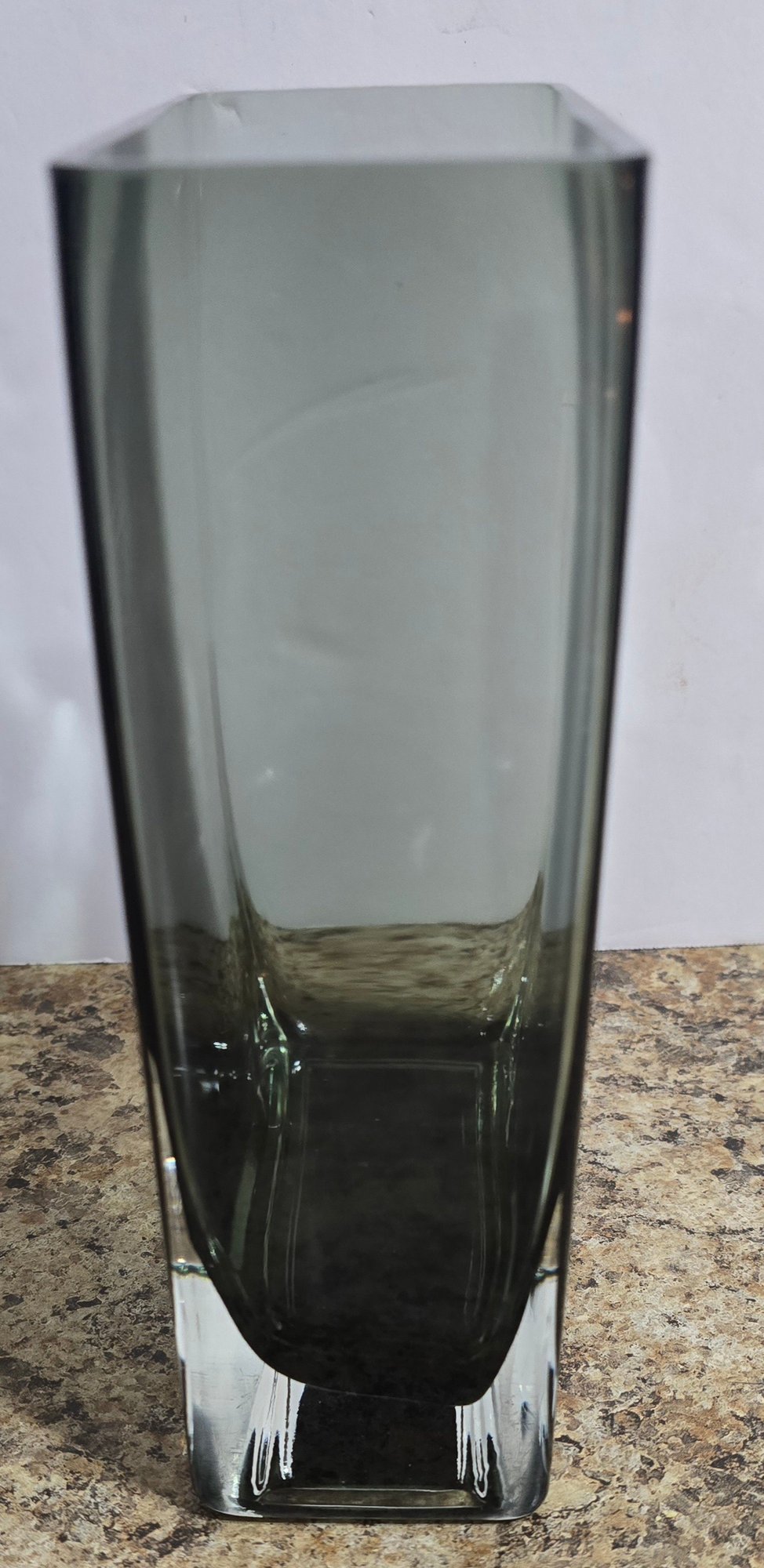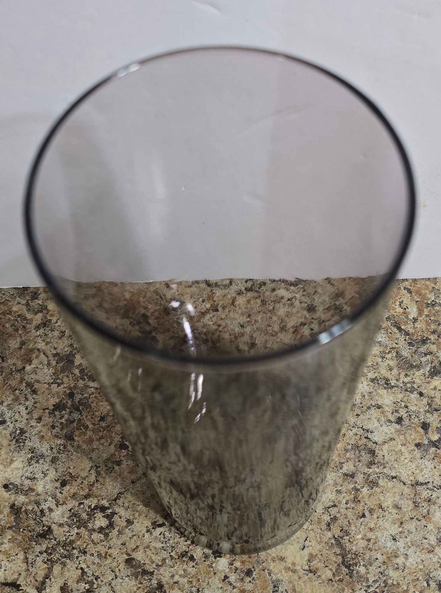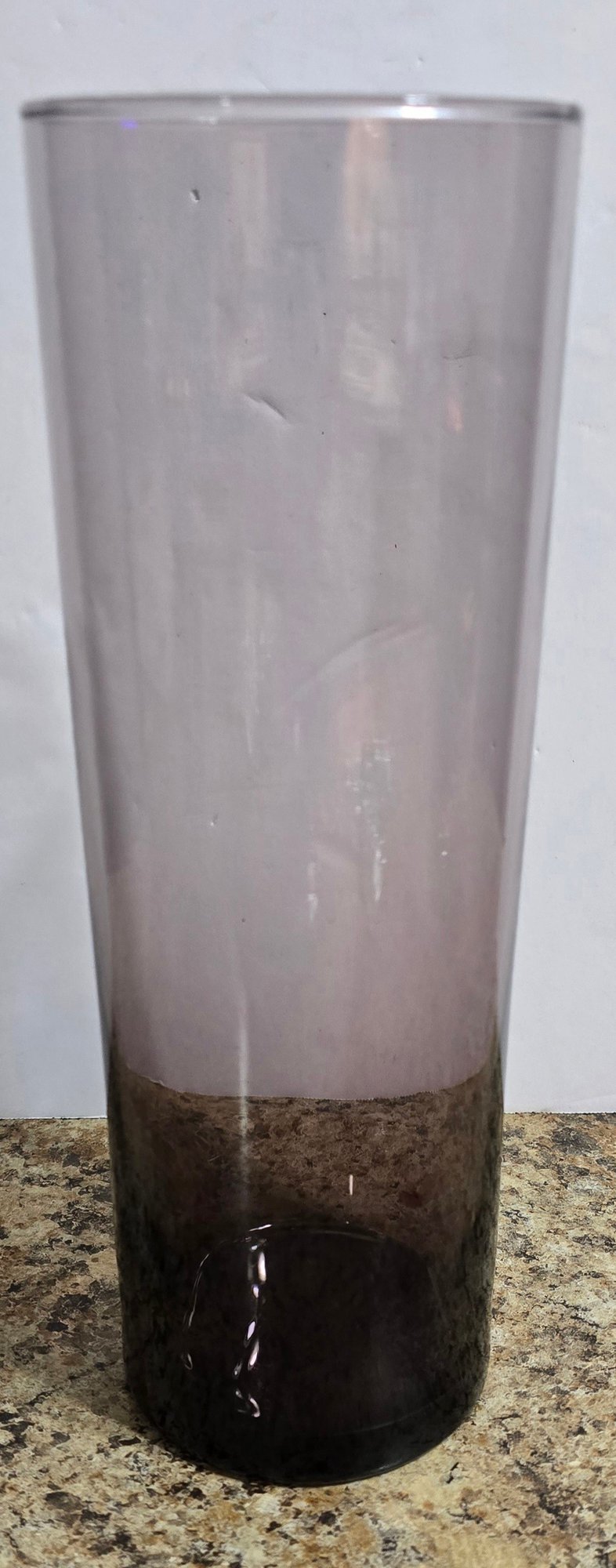 Pair of Modern Glass Vases with clear and colored gems for filler. Vases measures 4 75 x 2.5 x 8 & 3.5 x 10. No cracks or chips noted. Please see all pics for details.