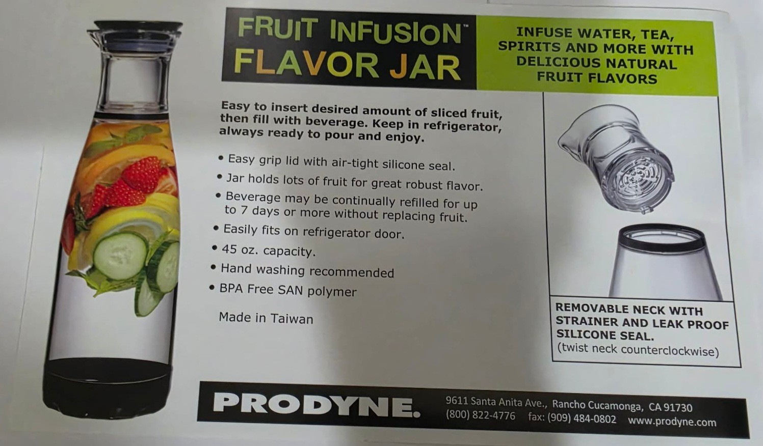 Pair of Prodyne Fruit Infusion Flavor Jar with a 45 oz capacity. Unused. Red in color.