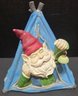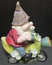 Pair of Resin gnomes. The blue is broke on bottom corner and light is missing part. Neither have been tested. Blue measures 9 x 6 x 9 and the motorcycle measures 9 x 4 x 11.