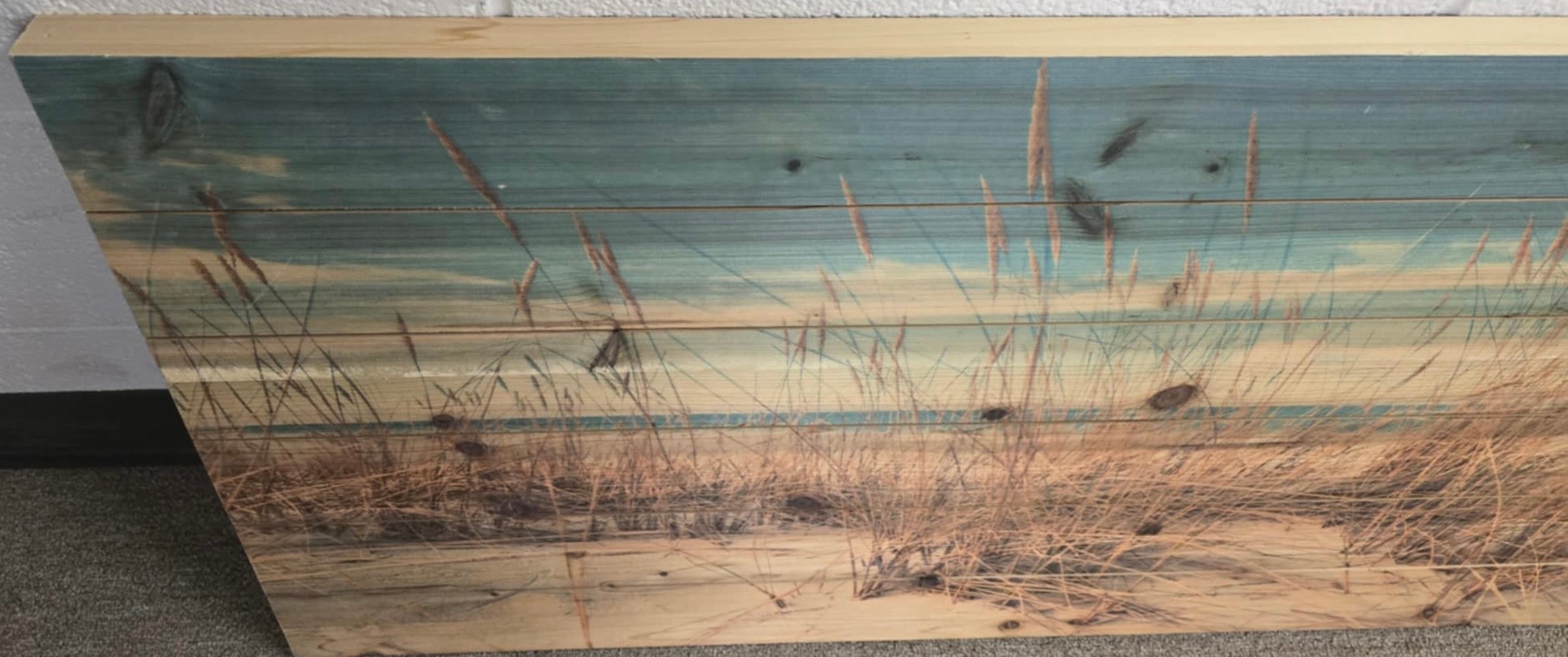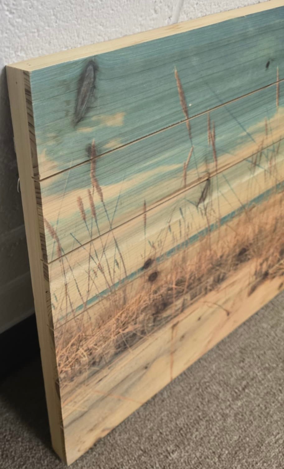 Gallery 57 "Beach Sand Dunes" Photograph Print on Planked Wood Wall Art. Measures 44 x 18.75 x 1.5.