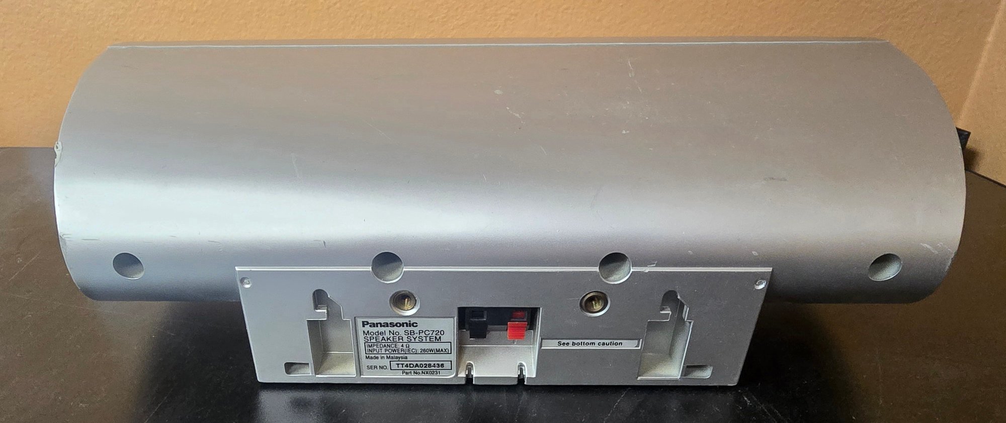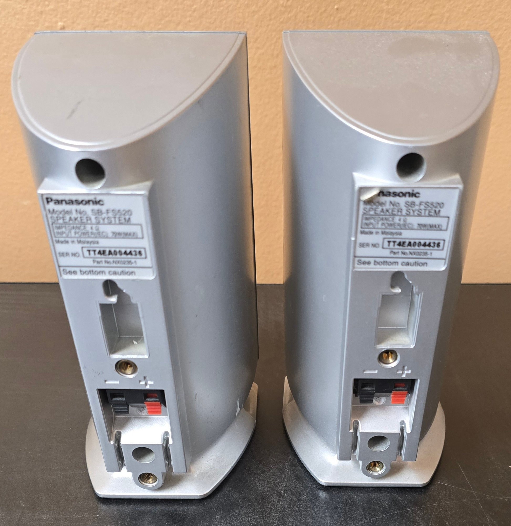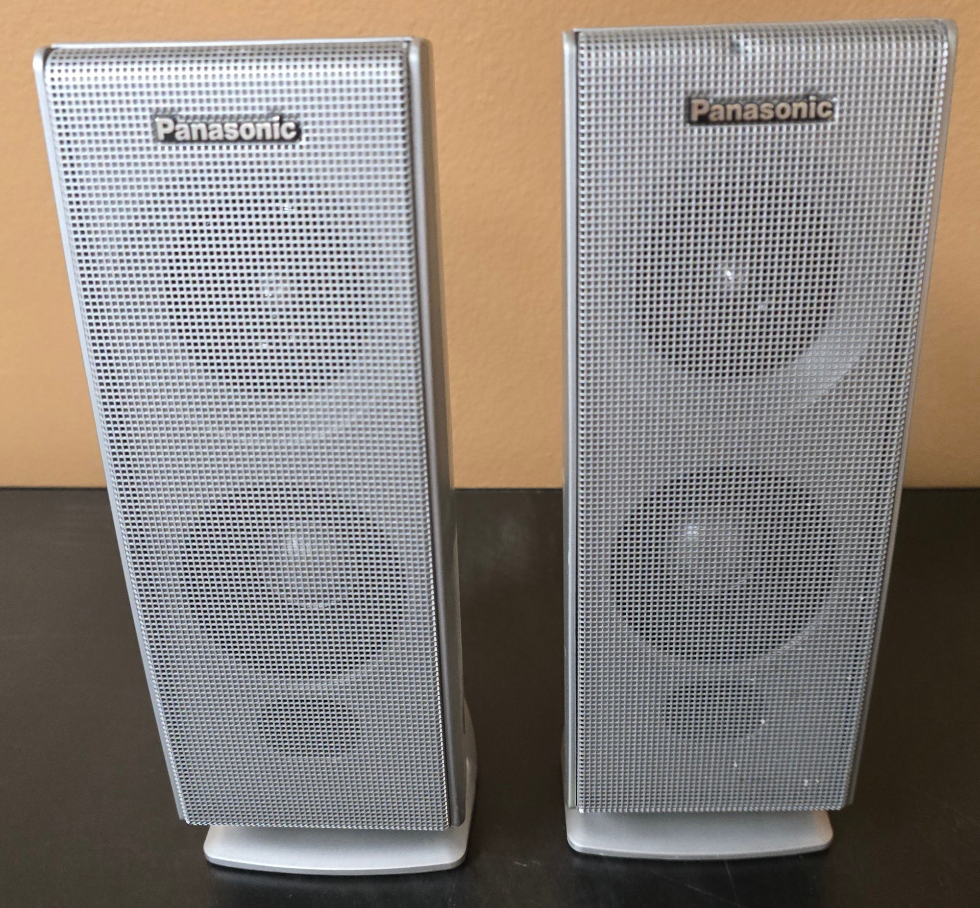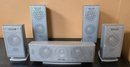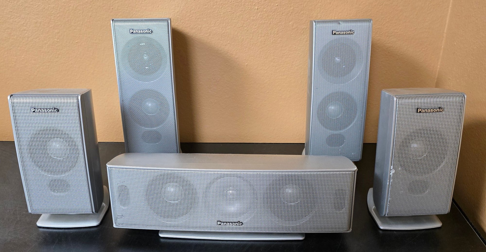 Panasonic SB-FS720 5-piece home theater speaker set, which includes surround speakers and a center channel speaker. Untested. Please see all pics for details.